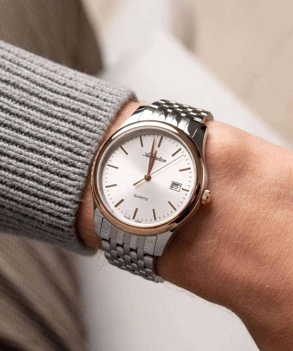 Часы Adriatica A1024.R113Q представляют собой идеальное сочетание элегантности и функциональности, разработанное для современных мужчин. Их стильный циферблат защищен сапфировым стекломСапфировое стеклоПрочный и надёжный материал из кристалла сапфира синтетического происхождения, характеризующийся особой твёрдостью и устойчивостью к царапинам и повреждениям., что придает дополнительную устойчивость к царапинам. Корпус из нержавеющей стали подчеркивает их изысканность и долговечность. Надежный кварцевый механизм с калибром RONDA 515 гарантирует точность времени, а водозащита WR 50 (5 ATM) обеспечивает защиту от воды в различных условиях. Браслет из нержавеющей стали с раскладной застёжкойРаскладная застёжкаТакой тип застёжки используется только на браслетах из металла. Она никогда не раскрывается полностью, происходит разделение на 2 и более частей. Раскладывающая застёжка снизит вероятность потери часов к минимуму., гармонично дополняет общий дизайн и обеспечивает комфортное ношение на запястье. Часы оснащены функцией отображения даты в окошке в положении 3 часа, что добавляет практичности в повседневной жизни. БезельБезельВнешний ободок, закрепляющий стекло. В спортивных часах так называется поворотное кольцо с делениями на циферблате, выполняет роль таймера – замеряет отрезки времени на шкале. Неподвижный безель – элемент декора. Однонаправленно вращающийся безель на дайверских часах позволяет фиксировать моменты погружения и выныривания на поверхность. с PVD-покрытиемPVDУльтратонкое покрытие наносится в технике вакуумного напыления, сочетает в себе нитрид титана особой прочности со слоем золота или оксида хрома. Несёт в себе декоративную или защитную функцию..
