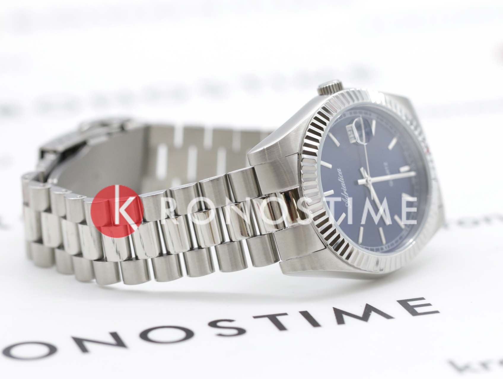 Часы Adriatica A1090.5115Q воплощают в себе классический стиль и надежность, идеально подходящие для современных мужчин. Их синий циферблат, защищенный минеральным стекломМинеральное стеклоМинеральное стекло представляет собой искусственно выращенный минерал кварца. Такое стекло отличается особой устойчивостью к повреждениям и царапинам. Уступает по некоторым качествам сапфировому стеклу., заключен в корпус из прочной нержавеющей стали. Надежный кварцевый механизм с калибром RONDA 515 обеспечивает точность, а водозащита уровня WR 50 (5 ATM) делает их устойчивыми к воздействию воды. Стальной браслет с раскладной застёжкойРаскладная застёжкаТакой тип застёжки используется только на браслетах из металла. Она никогда не раскрывается полностью, происходит разделение на 2 и более частей. Раскладывающая застёжка снизит вероятность потери часов к минимуму. подчеркивает элегантный стиль и комфортно сидит на запястье. Часы оснащены функцией отображения даты в окошке в положении 3 часа, что добавляет практичности в повседневной жизни. Люминесцентное покрытиеЛюминесцентное покрытиеПозволяет считывать показания времени в темноте. Производители наносят на стрелки, часовые индексы, безель или поверхность циферблата светонакопительный состав, дающий холодное свечение. на стрелках и метках обеспечивает отличную видимость в темноте.