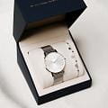 Amalys AMW-194 — женский набор, включающий часы и браслет, выполненный в едином элегантном стиле. Круглый корпус диаметром 33 мм изготовлен из нержавеющей стали, что подчёркивает изысканный характер модели. Защитную функцию выполняет сапфировое стеклоСапфировое стеклоПрочный и надёжный материал из кристалла сапфира синтетического происхождения, характеризующийся особой твёрдостью и устойчивостью к царапинам и повреждениям., стойкое к царапинам и сохраняющее прозрачность. Механизм — кварцевый, обеспечивающий точность хода и удобство в использовании. Водозащита 3 ATM защищает от случайных брызг и дождя. Циферблат оформлен в минималистичном стиле с тонкими метками и изящными стрелками, подчёркивающими женственный образ. Стальной браслет миланского плетения на раскладном замкеРаскладной замокДанный вариант застежки используется только на часах с металлическим браслетом. Отличительная особенность такого крепления в том, что длина браслета становится универсальной и вы можете самостоятельно отрегулировать нужный вам размер – застежка просто двигается по браслету часов. мягко облегает запястье и гармонично сочетается с корпусом. Дополняющий набор браслет усиливает впечатление цельности и придаёт образу завершённость.