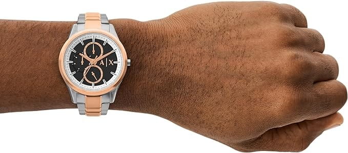Armani Exchange Dante AX1882 — это стильные часы, которые станут отличным дополнением к вашему образу. Они оснащены надежным кварцевым механизмом и имеют корпус из высококачественной нержавеющей стали, а безельБезельВнешний ободок, закрепляющий стекло. В спортивных часах так называется поворотное кольцо с делениями на циферблате, выполняет роль таймера – замеряет отрезки времени на шкале. Неподвижный безель – элемент декора. Однонаправленно вращающийся безель на дайверских часах позволяет фиксировать моменты погружения и выныривания на поверхность. розовымIP-покрытиемIP-покрытиеМетод ионного напыления. Демонстрирует повышенную устойчивость к истиранию, окислению и химическим веществам. Под воздействием высокого давления и температуры около 1500°C молекулы металла надёжно соединяются с частицами корпуса часов.. Черный циферблат украшен метками в виде штрихов, придавая часам современный и утонченный вид. Минеральное стеклоМинеральное стеклоМинеральное стекло представляет собой искусственно выращенный минерал кварца. Такое стекло отличается особой устойчивостью к повреждениям и царапинам. Уступает по некоторым качествам сапфировому стеклу. обеспечивает надежную защиту от царапин. функциональность. Функциональность часов на высоте: они показывают время в 12-ти и 24-х часовом формате и оснащены удобными индикаторами даты и дня недели на отдельных циферблатах. Браслет, выполненный из стали с частичным розовым IP-покрытиемIP-покрытиеМетод ионного напыления. Демонстрирует повышенную устойчивость к истиранию, окислению и химическим веществам. Под воздействием высокого давления и температуры около 1500°C молекулы металла надёжно соединяются с частицами корпуса часов., дополнен раскладной застёжкойРаскладная застёжкаТакой тип застёжки используется только на браслетах из металла. Она никогда не раскрывается полностью, происходит разделение на 2 и более частей. Раскладывающая застёжка снизит вероятность потери часов к минимуму. для комфортного ношения. Часы обладают водозащитой 50WR, что делает их подходящими для повседневного использования.