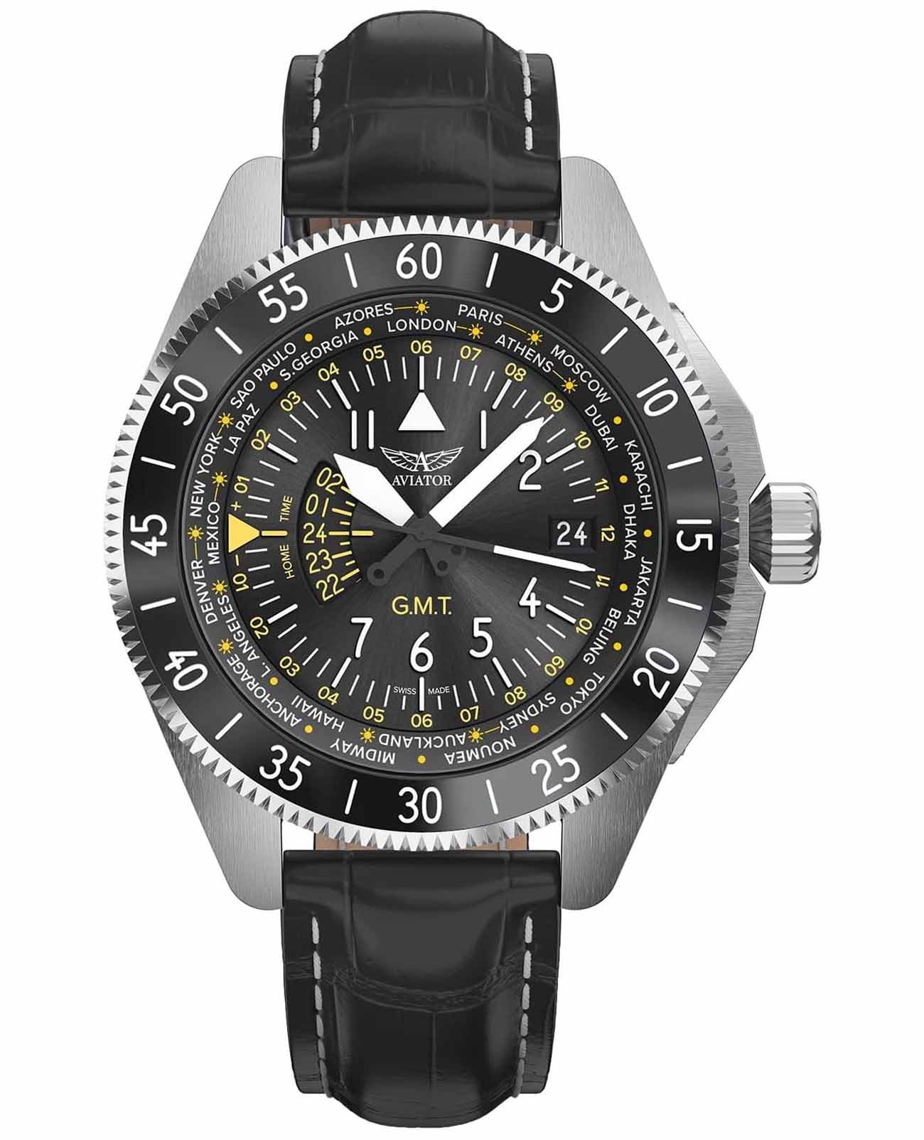 Airacobra GMT — инструментальное сочетание часовой точности, удобной функциональности GMT и авиационной эстетики, предназначенное для тех, кто ценит практичность и стиль в равной мере.