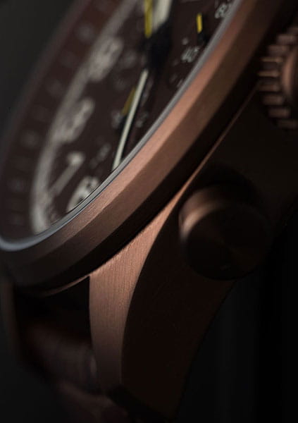 Aviator Airacobra P45 Chrono V.2.25.8.172.4  — швейцарские часы в духе пилотских инструментов, объединяющий точность, удобство и лаконичный дизайн. Диаметр корпуса — 45 мм, выполнен из нержавеющей стали 316L с PVD-покрытиемPVDУльтратонкое покрытие наносится в технике вакуумного напыления, сочетает в себе нитрид титана особой прочности со слоем золота или оксида хрома. Несёт в себе декоративную или защитную функцию., что подчёркивает техническую надёжность в образе часов. Циферблат оформлен в классическом aviator-стиле: крупные арабские цифры, широкие стрелки и чёткое деление минут позволяют считывать время мгновенно. Стрелки и метки покрыты люминесцентным покрытиемЛюминесцентное покрытиеПозволяет считывать показания времени в темноте. Производители наносят на стрелки, часовые индексы, безель или поверхность циферблата светонакопительный состав, дающий холодное свечение. Superluminova для отличной читаемости при слабом освещении. Циферблат защищён стойким сапфировым стекломСапфировое стеклоПрочный и надёжный материал из кристалла сапфира синтетического происхождения, характеризующийся особой твёрдостью и устойчивостью к царапинам и повреждениям. с антибликовым покрытиемАнтибликовое покрытиеСлой оксида металла в 0,13-0,3 микрон, благодаря которому стекло часов не бликует и не отражает свет. Антибликовое покрытие уменьшает отражение света в 10 раз, обеспечивая отличную читаемость показателей циферблата.. У модели присутствуют дата и точный откидной механизм завинчивающейся заводной головки и задней крышки, обеспечивающий надёжную водозащиту до 100 м и защиту от ударов. Внутри установлен швейцарский кварцевый механизм, который обеспечивает функции хронографаХронографФункция позволяет измерять отрезки времени с особой точностью: часы, минуты, секунды. Верным признаком хронографа является наличие на циферблате 3 дополнительных окошек-счётчиков.. Функции добавить (ADD) и разделить (SPLIT). Кожаный ремень со стандартной застежкой обеспечивает удобство и надёжную фиксацию. Эти изысканные часы так же обладают функциями тахиметраТахиметрРазмеченная шкала, располагается на ободке или безеле часов. Тахиметр позволяет рассчитать скорость на определённом участке пути, расстояние измеряется в километрах или милях., секундомераСекундомерСекундоме́р — прибор, способный измерять интервалы времени с точностью до долей секунды. и телеметра. Airacobra — это практичный и стильный инструмент для путешествий и активной повседневности, объединяющий авиационную эстетику, точный механизм и удобство.