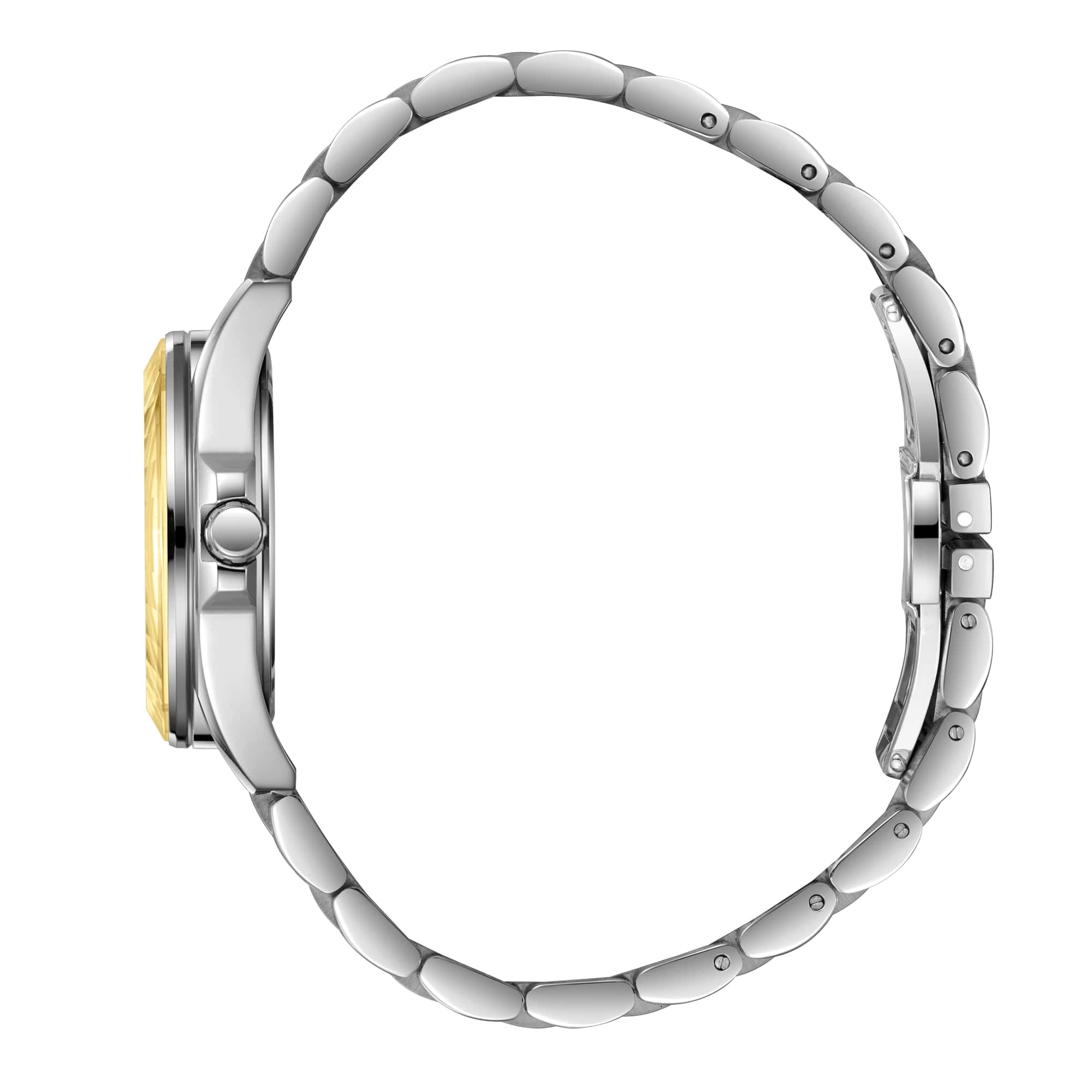 Стальной браслет с частичным IP-покрытиемIP-покрытиеМетод ионного напыления. Демонстрирует повышенную устойчивость к истиранию, окислению и химическим веществам. Под воздействием высокого давления и температуры около 1500°C молекулы металла надёжно соединяются с частицами корпуса часов. на застёжке-бабочке с кнопкамиЗастёжка "бабочка"Такой вид застёжки дополняется предохранителями, помогающими избежать случайного раскрытия браслета. Обладают изящным исполнением. . Часы обладают водозащитой до 30 метров, позволит защитить корпус от случайных брызг или капель дождя.