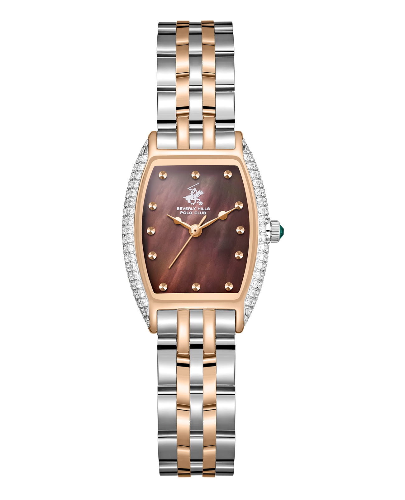 Женские кварцевые часы Beverly Hills Polo Club BP3804C.540 — это стильный аксессуар, выполненный из с частичным IP-покрытиеIP-покрытиеМетод ионного напыления. Демонстрирует повышенную устойчивость к истиранию, окислению и химическим веществам. Под воздействием высокого давления и температуры около 1500°C молекулы металла надёжно соединяются с частицами корпуса часов. розового цвета, что придаёт им элегантный внешний вид и устойчивость к царапинам. Корпус имеет размеры 23x31 мм, а циферблат защищён минеральным стекломМинеральное стеклоМинеральное стекло представляет собой искусственно выращенный минерал кварца. Такое стекло отличается особой устойчивостью к повреждениям и царапинам. Уступает по некоторым качествам сапфировому стеклу. с Сапфировое стеклоСапфировое стеклоПрочный и надёжный материал из кристалла сапфира синтетического происхождения, характеризующийся особой твёрдостью и устойчивостью к царапинам и повреждениям., устойчивым к повседневным нагрузкам. Циферблат украшен вставками из циркония, что делает модель особенно изысканной и привлекательной. Стальной браслет с розовым IP-покрытиеIP-покрытиеМетод ионного напыления. Демонстрирует повышенную устойчивость к истиранию, окислению и химическим веществам. Под воздействием высокого давления и температуры около 1500°C молекулы металла надёжно соединяются с частицами корпуса часов. обеспечивает комфорт при ношении и надёжную фиксацию на запястье. Водонепроницаемость позволяет использовать часы при мытье рук или под лёгким дождём. Эти часы станут универсальным аксессуаром для тех, кто ценит сочетание стиля, функциональности и безупречного качества — идеальный выбор для повседневной носки и торжественных случаев.