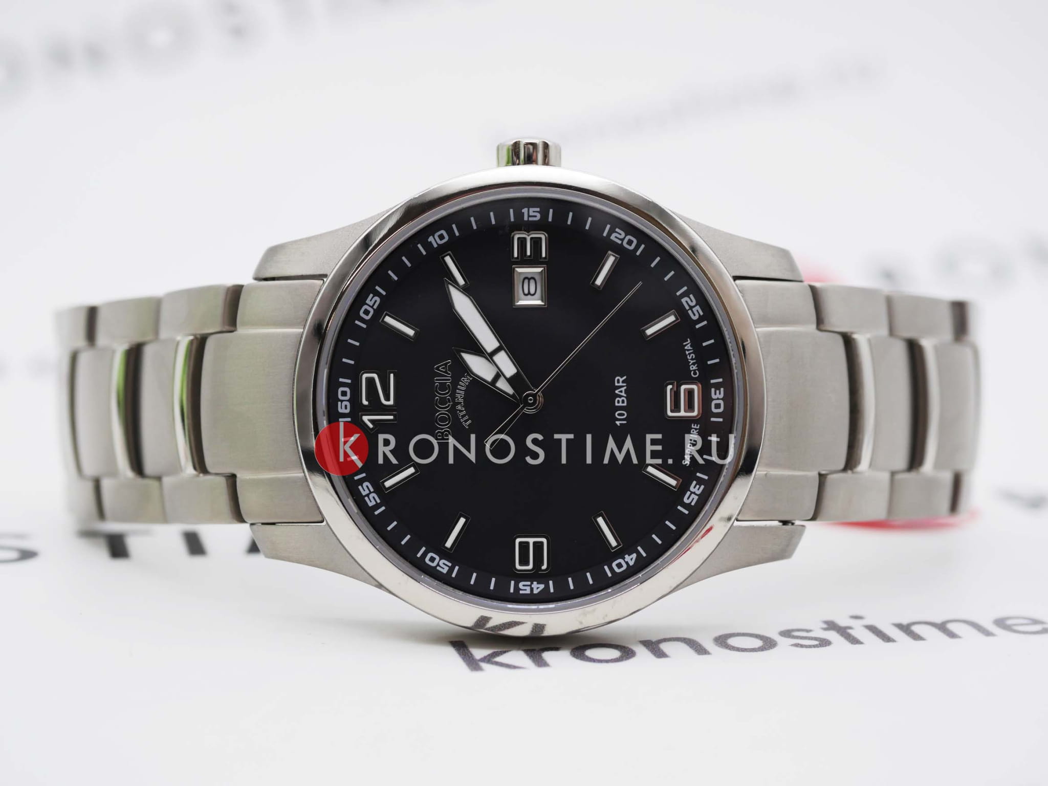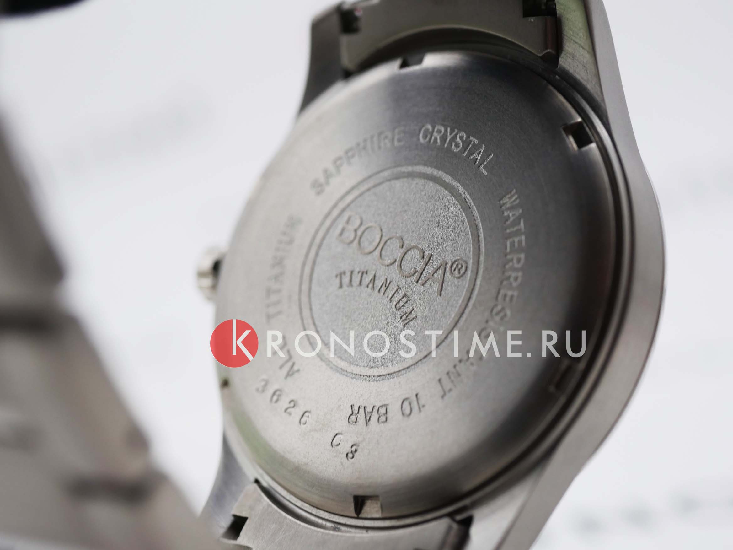 Мужские наручные часы Boccia Titanium 3626-03 с надёжным кварцевым механизмом. Корпус и браслет часов изготовлены из титана. Сапфировое стеклоСапфировое стеклоПрочный и надёжный материал из кристалла сапфира синтетического происхождения, характеризующийся особой твёрдостью и устойчивостью к царапинам и повреждениям. устойчивое к мелким механическим повреждениям. Класс водозащиты: 100 метров, позволит плавать, нырять и заниматься другими водными видами спорта. Окошко даты в положении 3 часа. Титановый браслет на раскладной застёжкеРаскладная застёжкаТакой тип застёжки используется только на браслетах из металла. Она никогда не раскрывается полностью, происходит разделение на 2 и более частей. Раскладывающая застёжка снизит вероятность потери часов к минимуму.. Стрелки и метки с люминесцентным покрытиемЛюминесцентное покрытиеПозволяет считывать показания времени в темноте. Производители наносят на стрелки, часовые индексы, безель или поверхность циферблата светонакопительный состав, дающий холодное свечение..