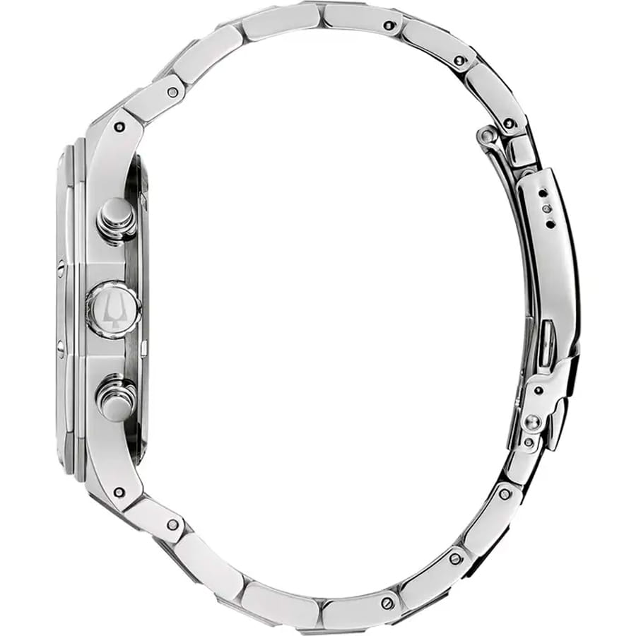 Мужские кварцевые часы-хронографХронографФункция позволяет измерять отрезки времени с особой точностью: часы, минуты, секунды. Верным признаком хронографа является наличие на циферблате 3 дополнительных окошек-счётчиков. Bulova Classic 96B408  – отражающий идеальное сочетание современного дизайна, надёжности и функциональности. Элегантный облик станет превосходным завершением образа, наделив его индивидуальным характером. Корпус из нержавеющей стали, диаметром 44 мм идеально сбалансирован и элегантен. Минеральное стеклоМинеральное стеклоМинеральное стекло представляет собой искусственно выращенный минерал кварца. Такое стекло отличается особой устойчивостью к повреждениям и царапинам. Уступает по некоторым качествам сапфировому стеклу. защищает циферблат от царапин и устойчивое к мелким механическим повреждениям. Шкала тахиметраТахиметрРазмеченная шкала, располагается на ободке или безеле часов. Тахиметр позволяет рассчитать скорость на определённом участке пути, расстояние измеряется в километрах или милях. на циферблате. Стальной браслет на раскладной застёжкеРаскладная застёжкаТакой тип застёжки используется только на браслетах из металла. Она никогда не раскрывается полностью, происходит разделение на 2 и более частей. Раскладывающая застёжка снизит вероятность потери часов к минимуму. обеспечивает комфортное ношение. Стрелки и метки с люминесцентным покрытиемЛюминесцентное покрытиеПозволяет считывать показания времени в темноте. Производители наносят на стрелки, часовые индексы, безель или поверхность циферблата светонакопительный состав, дающий холодное свечение. позволяющие легко определять время даже в темноте. Водозащита 100 метров, позволит плавать, нырять и заниматься другими водными видами спорта. Окошко даты находится в положении между 4 и 5 часов. Эта модель – отличный выбор для тех, кто ищет сочетание стиля, качества и функциональности. Часы станут не только полезным аксессуаром, но и выразительным элементом вашего имиджа.