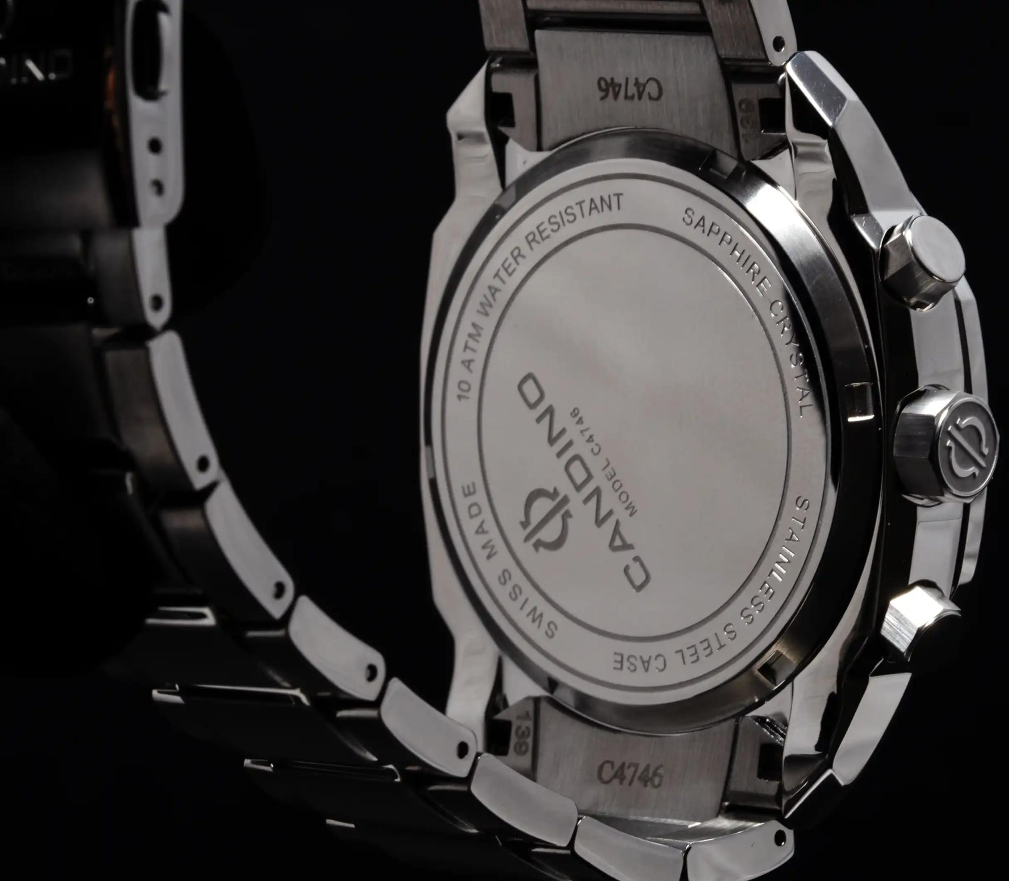 Швейцарские мужские наручные часы-хронографХронографФункция позволяет измерять отрезки времени с особой точностью: часы, минуты, секунды. Верным признаком хронографа является наличие на циферблате 3 дополнительных окошек-счётчиков. Candino Chronos Carree C4746/1, кварцевый механизм с высокой точностью. Сапфировое стеклоСапфировое стеклоПрочный и надёжный материал из кристалла сапфира синтетического происхождения, характеризующийся особой твёрдостью и устойчивостью к царапинам и повреждениям. устойчивое к появлению царапин, обладающее высокой прозрачностью. Часы, минуты, секунды. Индикация даты. Класс водозащиты: 100 метров, позволит плавать, нырять и заниматься другими водными видами спорта. Корпус часов изготовлен из нержавеющей стали. Стрелки и метки с люминесцентным покрытиемЛюминесцентное покрытиеПозволяет считывать показания времени в темноте. Производители наносят на стрелки, часовые индексы, безель или поверхность циферблата светонакопительный состав, дающий холодное свечение..Стальной браслет на раскладной застёжкеРаскладная застёжкаТакой тип застёжки используется только на браслетах из металла. Она никогда не раскрывается полностью, происходит разделение на 2 и более частей. Раскладывающая застёжка снизит вероятность потери часов к минимуму..