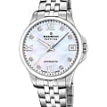 Женские механические наручные часы с автоподзаводом Candino Automatic Ladies C4770/1. Корпус и браслет часов изготовлены из нержавеющей стали. Сапфировое стеклоСапфировое стеклоПрочный и надёжный материал из кристалла сапфира синтетического происхождения, характеризующийся особой твёрдостью и устойчивостью к царапинам и повреждениям. повышенной прозрачности, устойчивое к мелким механическим повреждениям. Стальной браслет на раскладной застёжкеРаскладная застёжкаТакой тип застёжки используется только на браслетах из металла. Она никогда не раскрывается полностью, происходит разделение на 2 и более частей. Раскладывающая застёжка снизит вероятность потери часов к минимуму.. Стрелки с люминесцентным покрытиемЛюминесцентное покрытиеПозволяет считывать показания времени в темноте. Производители наносят на стрелки, часовые индексы, безель или поверхность циферблата светонакопительный состав, дающий холодное свечение.. Циферблат инкрустирован кристаллами. Класс водозащиты: 50 метров, позволит защитить корпус от случайных брызг или капель дождя. Окошко даты находится в положении 3 часа.