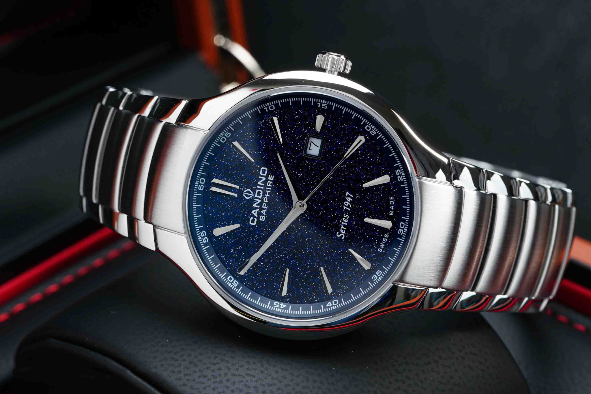 Мужские кварцевые часы Candino — это сочетание классического дизайна и швейцарского качества. Корпус диаметром 40 мм и толщиной 9,3 мм выполнен из нержавеющей стали. Циферблат синего цвета оформлен индексами и стрелками. Окошко даты расположено в положении 3 часов. Циферблат защищён сапфировым стекломСапфировое стеклоПрочный и надёжный материал из кристалла сапфира синтетического происхождения, характеризующийся особой твёрдостью и устойчивостью к царапинам и повреждениям., устойчивым к царапинам. Механизм — кварцевый калибр Ronda 705, произведённый в Швейцарии. Часы оснащены стальным браслетом с застёжкой «бабочка» с кнопкамиЗастёжка "бабочка"Такой вид застёжки дополняется предохранителями, помогающими избежать случайного раскрытия браслета. Обладают изящным исполнением. . Водонепроницаемость 100 м позволяет использовать часы в повседневных условиях. Гарантия — 2 года. Идеальный выбор для тех, кто ценит стиль, точность и надёжность.