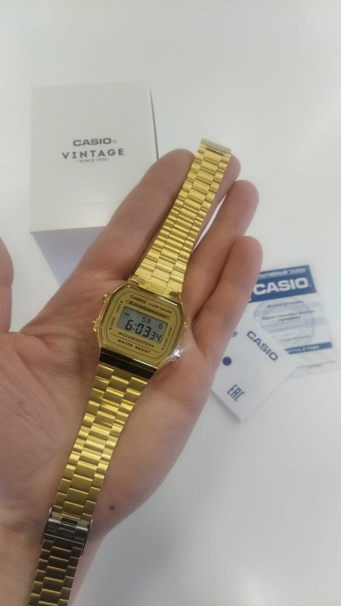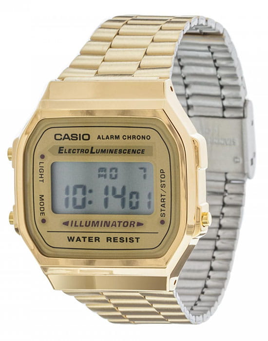 Брендовый аксессуар в золотом цвете имеет IP-покрытиеIP-покрытиеМетод ионного напыления. Демонстрирует повышенную устойчивость к истиранию, окислению и химическим веществам. Под воздействием высокого давления и температуры около 1500°C молекулы металла надёжно соединяются с частицами корпуса часов. стального браслета, защищающее от царапин и изнашивания, а также выполняющее декоративное предназначение. Высокоточный кварцевый механизм. Яркая электролюминесцентная подсветка. Противоударный корпусУдаропрочный корпусМеханизм заключён в корпус, выполненный из современных материалов, устойчивых к ударам, механическим повреждениям и падению с высоты: инновационный пластик, карбон, нержавеющая сталь, титан. 8-угольной формы из надёжного пластика. Удобная застёжка расстёгивается одним касанием. Будильник, автоматический календарь. Габариты: 36,3 x 38,6 x 9,6 мм.