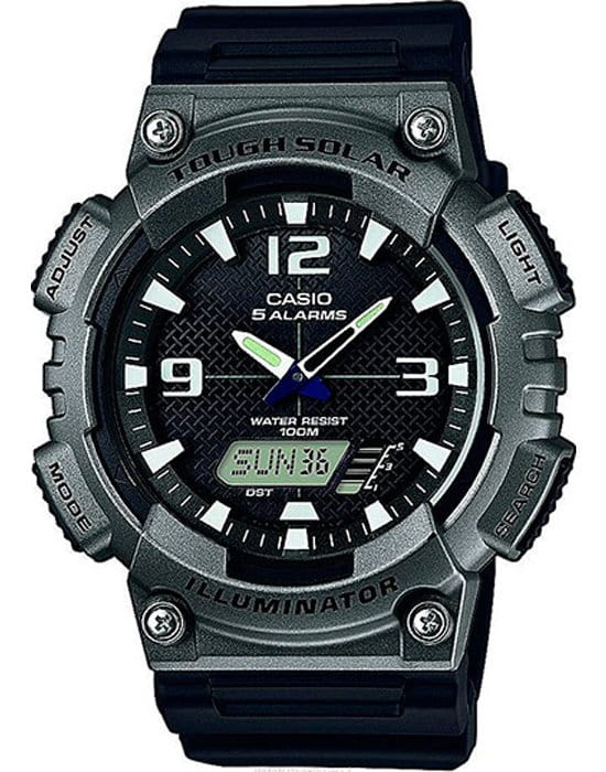 Наручные часы с цифроаналоговой индикацией для активного отдыха. Надежные и недорогие. Прочный пластиковый корпус, водостойкость до 100 метров. Многофункциональный кварцевый механизм, солнечная батарея Tough Solar яркая светодиодная подсветка.