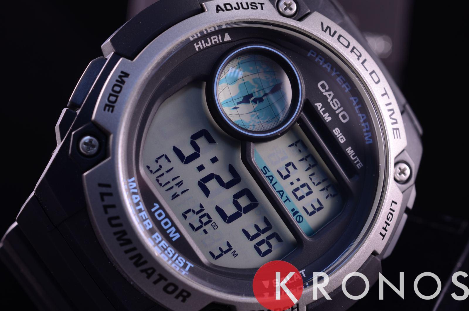 Стильный и современный дизайн. Часы предупреждают при наступлении каждой из 5-ти молитв. Мусульманский календарь. Отображается возраст и фаза луны. Светодиодная подсветкаСветодиодная подсветкаСветодиодная или LED-подсветка обеспечивает появление яркого холодного свечения за счёт LED-элементов - маленьких лампочек. Они потребляют минимальное количество энергии, чаще всего можно встретить 1 светодиод, в нижней части циферблата.. Водонепроницаемость составляет 100 WR.
