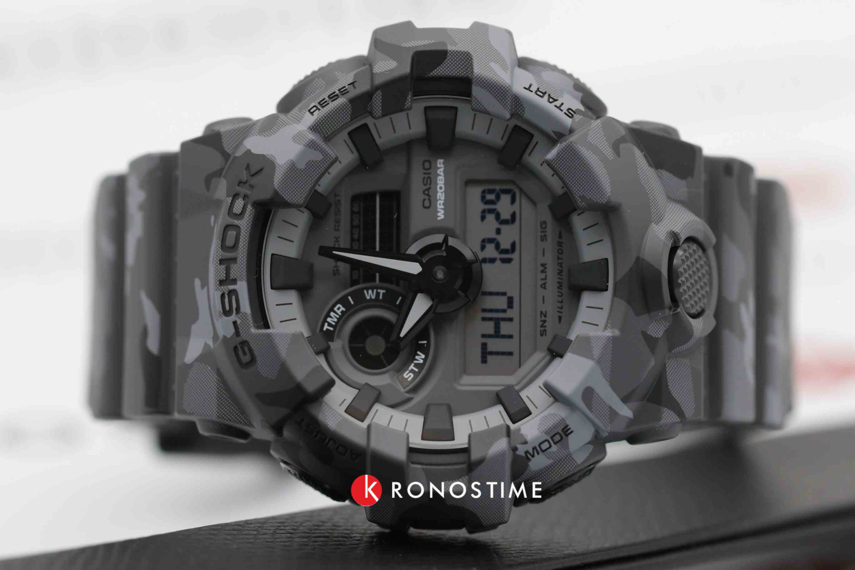 Перед вами модель из серии G-SHOCK GA-700 в стильном и брутальном серо-камуфляжном корпусе! Благодаря новому переосмысленному дизайну и крупным стрелкам, часы имеют не только великолепный внешний вид, но и обладают действительно удобной индикацией времени.