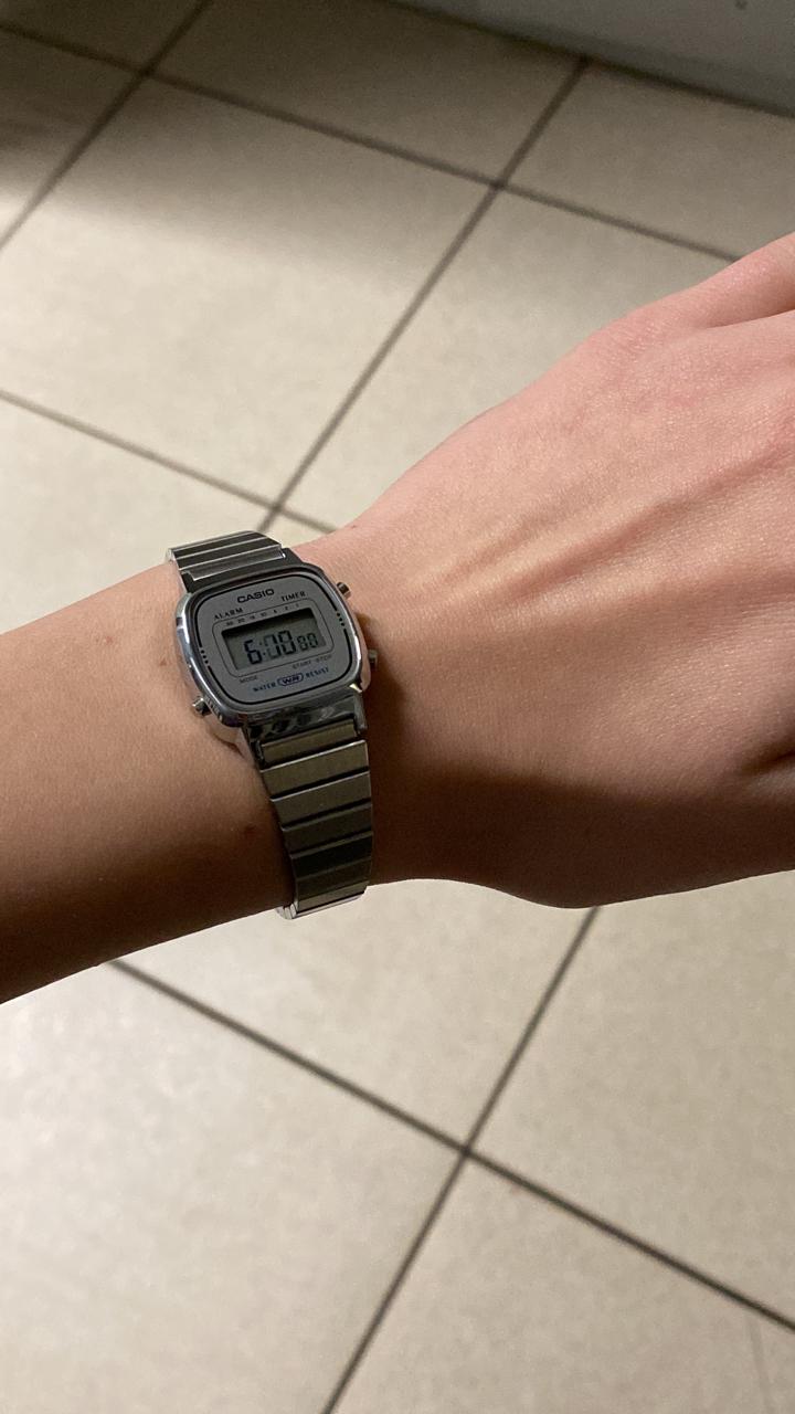 Часы имеют функцию таймера и будильника. Устойчива к мелким брызгам. Любые контакты с большим количеством воды следует избегать.  Благодаря серебристому цвету часы сочетаются со всеми моими обычными аксессуарами. На руке они смотрятся действительно хорошо, их можно комбинировать с браслетами и кольцами.