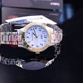 Прочный корпус модели сделан из гипоаллергенной латуни. На поверхность корпуса нанесено защитное IP-покрытие золотистого цвета. Гладкий, серебристый браслет сделан из нержавеющей стали. На крупном циферблате круглой формы расположены черные, удобные обзора арабские цифры. Защита кварцевых часов обеспечивается стойким к царапинам минеральным стеклом. Вес аксессуара составляет примерно 40 грамм.