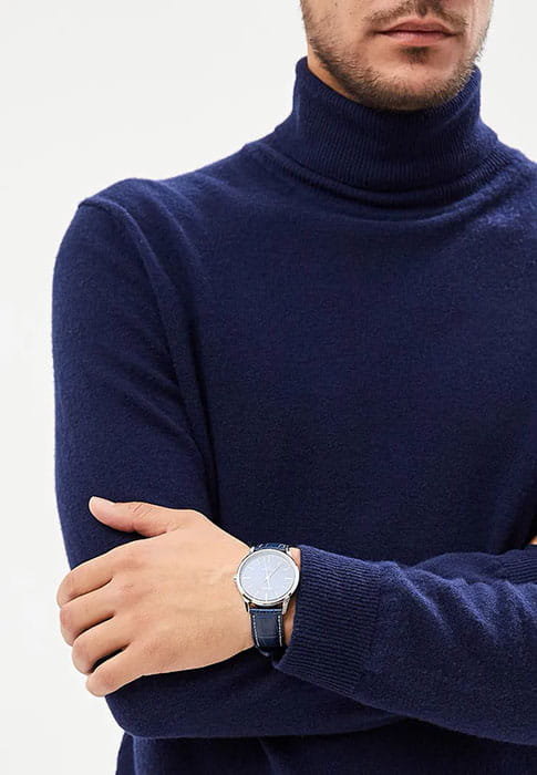 Классический стиль аксессуара никогда не утратит своей актуальности, его универсальный дизайн открывает нам двери в мир экспериментов с различными стилями в одежде. Традиционный циферблат синего цвета идеально сочетается с ремешком из натуральной кожи такого же оттенка. Кварцевый механизм обеспечивает безупречную точность хода, эксплуатационный срок батарейки составляет 3 года. Минеральное стекло характеризуется устойчивостью к появлению царапин. Водонепроницаемость 5 бар. Габариты: 47 x 40 x 8,1 мм.