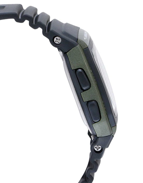 Модель с тёмно-зелёным цветовым акцентом будет уместной в любой ситуации, универсальное исполнение с воплощением спортивных элементов никогда не потеряет актуальности. Наручные часы с высокоточным кварцевым механизмом имеют батарейку с рекордным сроком службы - 10 лет. Яркая светодиодная подсветка IlluminatorСветодиодная подсветкаСветодиодная или LED-подсветка обеспечивает появление яркого холодного свечения за счёт LED-элементов - маленьких лампочек. Они потребляют минимальное количество энергии, чаще всего можно встретить 1 светодиод, в нижней части циферблата.. 12/24-х часовое отображение времени. Органическое стекло выпуклой формы. Корпус и браслет из гибкого пластика. Функции: будильник, секундомер, индикация числа, месяца, дня недели. Водостойкость 5 бар. Габариты: 43,9 x 35,7 x 12,5 мм.