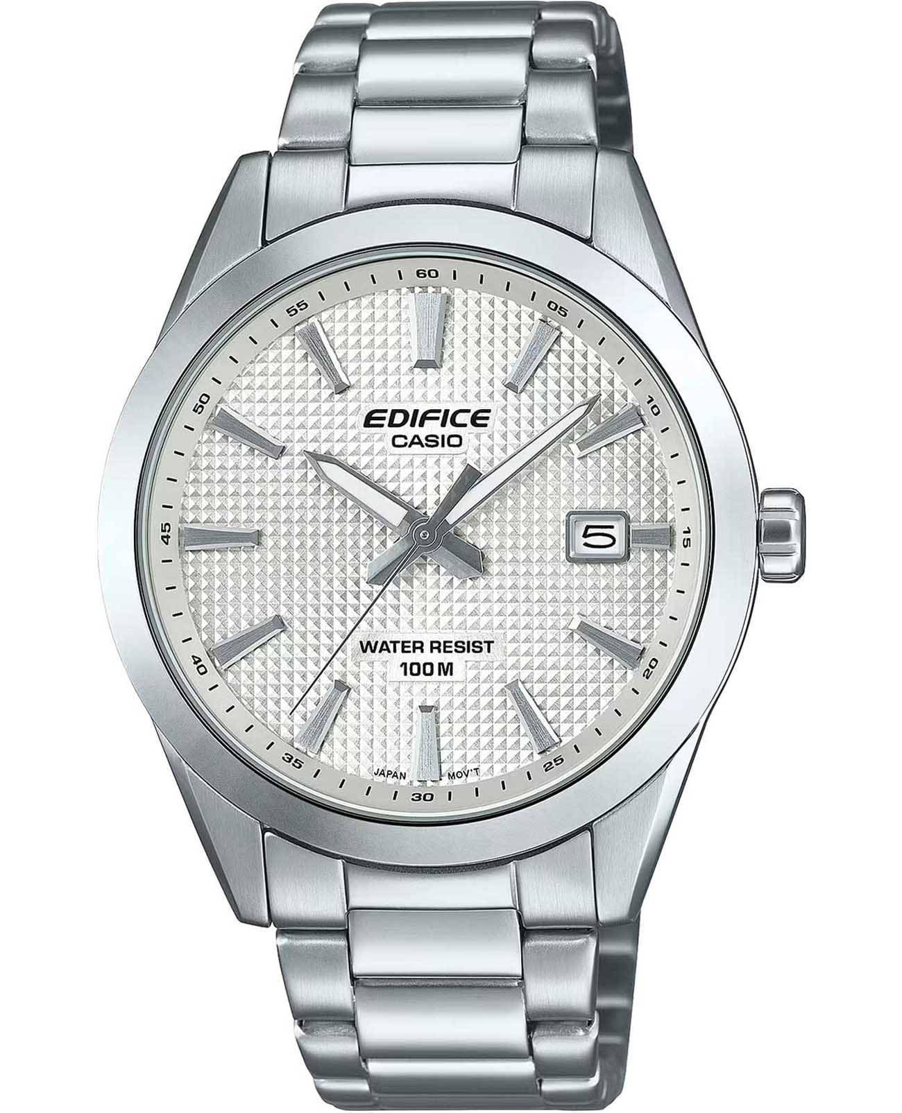 Мужские кварцевые часы Casio Edifice EFV-160D-7A — это стильный аксессуар, сочетающий в себе надёжность и функциональность. Модель выполнена из нержавеющей стали. Защиту механизма обеспечивает минеральное стеклоМинеральное стеклоМинеральное стекло представляет собой искусственно выращенный минерал кварца. Такое стекло отличается особой устойчивостью к повреждениям и царапинам. Уступает по некоторым качествам сапфировому стеклу. с сферической формой, устойчивое к повреждениям. Задняя пластина имеет винтовой замок, что обеспечивает надёжную фиксацию на запястье. Браслет из нержавеющей стали оснащён  раскладной застёжкойРаскладная застёжкаТакой тип застёжки используется только на браслетах из металла. Она никогда не раскрывается полностью, происходит разделение на 2 и более частей. Раскладывающая застёжка снизит вероятность потери часов к минимуму., обеспечивающей комфорт и надёжную фиксацию. Окошко даты находится в положении 3 часа. Часы водонепроницаемы до 100 метров, что позволяет использовать их при плавании и других водных активностях без глубокого погружения. Точность хода составляет ±20 секунд в месяц, а срок службы батареи — примерно 3 года. Эти часы станут универсальным аксессуаром для тех, кто ценит сочетание стиля, функциональности и надёжности — идеальный выбор для повседневной носки и активного образа жизни.