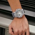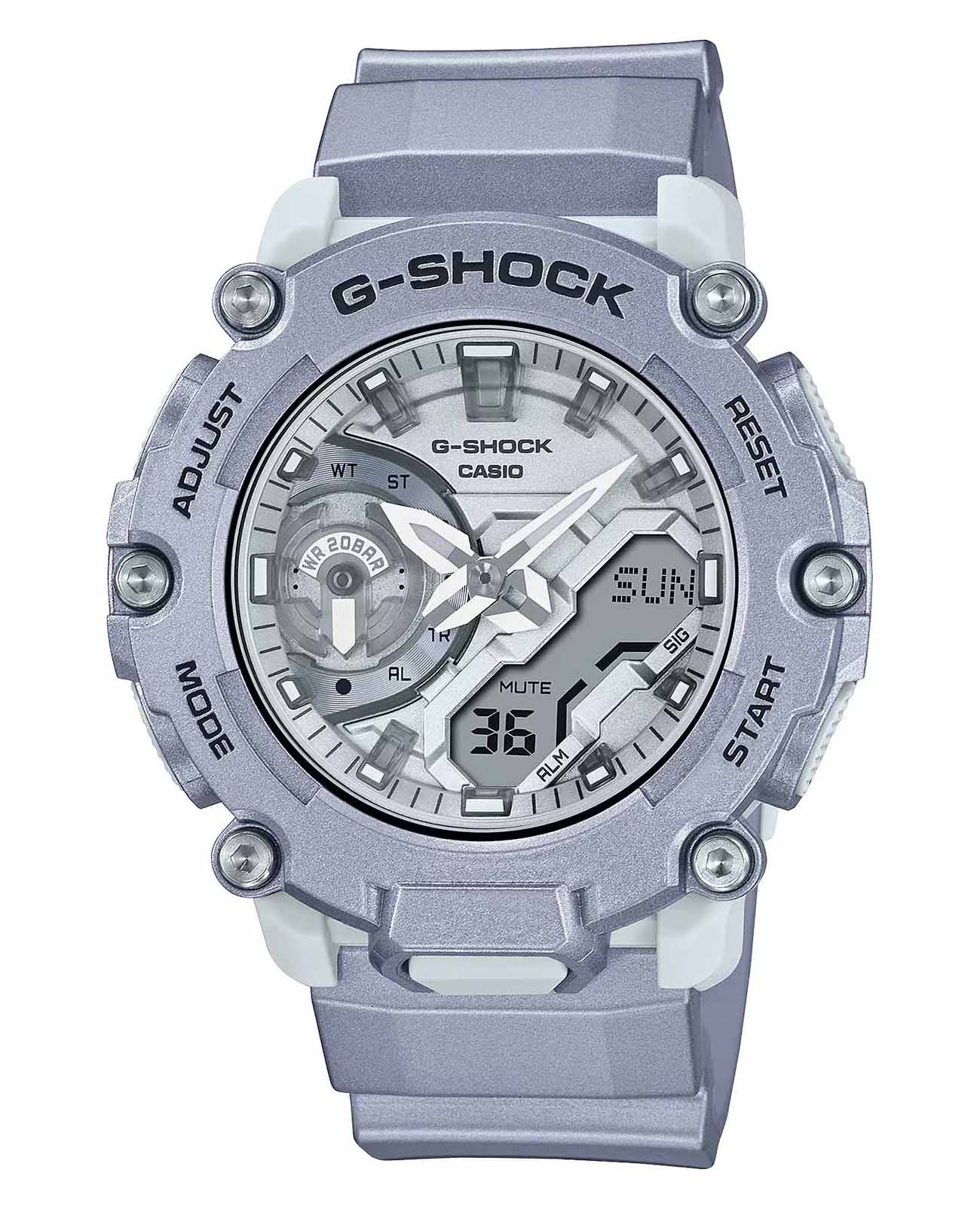 Японские мужские часы-хронографХронографФункция позволяет измерять отрезки времени с особой точностью: часы, минуты, секунды. Верным признаком хронографа является наличие на циферблате 3 дополнительных окошек-счётчиков. Casio G-Shock G-SHOCK GA-2200FF-8ADR из коллекции G-Shock. Минеральное стеклоМинеральное стеклоМинеральное стекло представляет собой искусственно выращенный минерал кварца. Такое стекло отличается особой устойчивостью к повреждениям и царапинам. Уступает по некоторым качествам сапфировому стеклу. устойчивое к появлению царапин, обладающее высокой прозрачностью. Часы со структурой Carbon Core Guard в стильном цвете серебристый металлик. Противоударный пластиковый корпус с карбоновыми волокнами более прочный и, в то же время, более легкий. Этот же материал защищает внутренний модуль от повреждений и деформаций при ударах. Светодиодная автоподсветка NeobriteПодсветка NeobriteИспользование светонакопительных составов на основе сульфида цинка или алюмината стронция, яркий свет можно наблюдать на протяжении 6-10 часов после «зарядки» часов около источника света. - при повороте часов в сторону лица подсветка дисплея осуществляется автоматически. Настраиваемое послесвечение 1,5 или 3сек. Цвет подсветки: оранжевый. Необритовое светонакопительное покрытие обеспечивает длительное послесвечение в темноте даже после кратковременного нахождения на свету. Ударопрочный корпусУдаропрочный корпусМеханизм заключён в корпус, выполненный из современных материалов, устойчивых к ударам, механическим повреждениям и падению с высоты: инновационный пластик, карбон, нержавеющая сталь, титан. защищает механизм от ударов и вибрации. Мировое времяМировое время Полезное часовое усложнение, отображающее время в основных городах и известных областях по всему миру, оно связано с часовыми поясами, удобно для путешественников и бизнесменов. – 48 городов (29 часовых поясов). СекундомерСекундомерСекундоме́р — прибор, способный измерять интервалы времени с точностью до долей секунды. с точностью измерения 1/100 секунды и измерением до 23 часов 59 минут 59,99 cек. ТаймерТаймерОтсчитывает секунды в обратном направлении в заданном интервале времени. обратного отсчета (диапазон времени 24 часа), автоматический календарь, 12/24 отображение времени. 5будильниковБудильникБуди́льник — часы, в заданный момент времени подающие звуковой, световой и/или в редких случаях другой сигнал., один с функцией Snooze, ежечасный сигнал. Стальная задняя крышка крепится на 4-х винтах. Класс водозащиты: 200 метров, позволит плавать, нырять и заниматься другими водными видами спорта. Ремешок из полимерного материала на стандартной застежке.