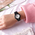 Часы в спортивном стиле полностью подойдут для пляжного отдыха. Корпус и браслет выполнены из высокопрочных полимерных материалов. На аккуратном циферблате расположены временные отметки в виде штрихов и миниатюрное окошечко с календарем. Люминесцентная подсветкаЛюминесцентное покрытиеПозволяет считывать показания времени в темноте. Производители наносят на стрелки, часовые индексы, безель или поверхность циферблата светонакопительный состав, дающий холодное свечение.. Высокая водонепроницаемость в 100 WR идеально подходит для плавания в воде. Небольшой вес в 25 грамм не создаст ощущения тяжести при ношении аксессуара.