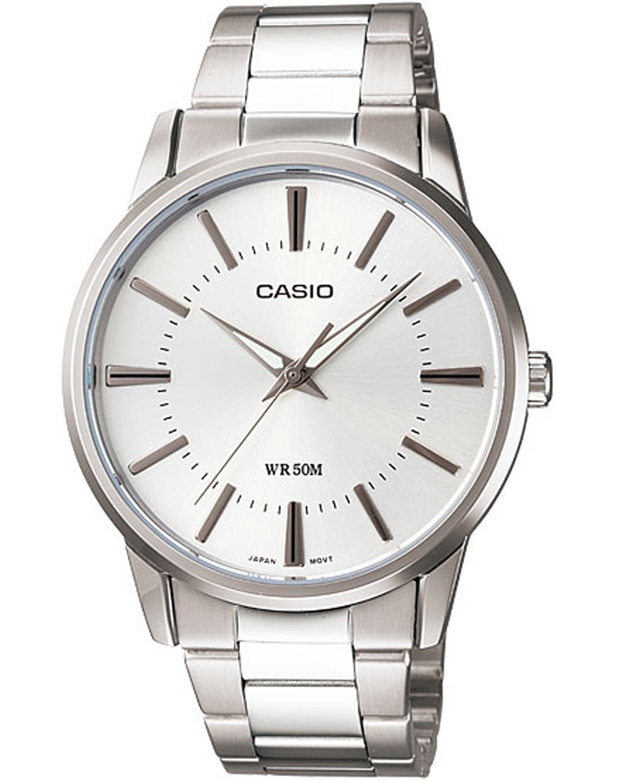 Мужские японские наручные часы Casio Collection MTP-1303D-7A с минеральным стекломМинеральное стеклоМинеральное стекло представляет собой искусственно выращенный минерал кварца. Такое стекло отличается особой устойчивостью к повреждениям и царапинам. Уступает по некоторым качествам сапфировому стеклу. умело сочетают в себе винтажные элементы и спортивный стиль, часы придутся по вкусу ценителям японского качества и лаконичности. Высокотехнологичный аксессуар обладает строгим стилем и традиционной формой циферблата. Сдержанные, классические цвета и плавные линии позволяют носить часы, не снимая, их универсальность идеально подходит для делового костюма, повседневной одежды или образа для вечернего выхода. Для корпуса использована нержавеющая сталь 316L, за счёт чего достигается повышенная устойчивость к повреждениям и ударам. Надежные часы которые прослужат много лет. Модель комплектуется надёжным механизмом, точность хода которого составляет +/- 20 сек/мес. Класс водозащиты: 50 метров, позволит защитить корпус от случайных брызг или капель дождя. Стрелки с люминесцентным покрытиемЛюминесцентное покрытиеПозволяет считывать показания времени в темноте. Производители наносят на стрелки, часовые индексы, безель или поверхность циферблата светонакопительный состав, дающий холодное свечение.. Стальной браслет на раскладной застёжкеРаскладная застёжкаТакой тип застёжки используется только на браслетах из металла. Она никогда не раскрывается полностью, происходит разделение на 2 и более частей. Раскладывающая застёжка снизит вероятность потери часов к минимуму..