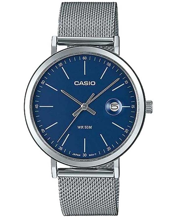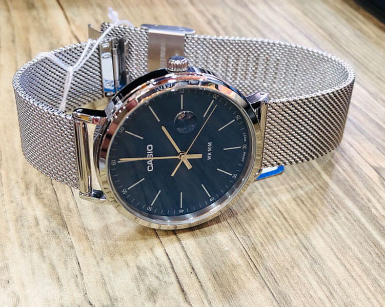 Японские мужские наручные часы Casio Collection MTP-E175M-2E с минеральным стекломМинеральное стеклоМинеральное стекло представляет собой искусственно выращенный минерал кварца. Такое стекло отличается особой устойчивостью к повреждениям и царапинам. Уступает по некоторым качествам сапфировому стеклу., кварцевый механизм с высокой точностью. Окошко даты с увеличительным стеклом. Класс водозащиты: 50 метров, позволит защитить корпус от случайных брызг или капель дождя. Корпус часов изготовлен из стали, серебристого цвета.Стальной браслет на раскладной застёжкеРаскладная застёжкаТакой тип застёжки используется только на браслетах из металла. Она никогда не раскрывается полностью, происходит разделение на 2 и более частей. Раскладывающая застёжка снизит вероятность потери часов к минимуму..