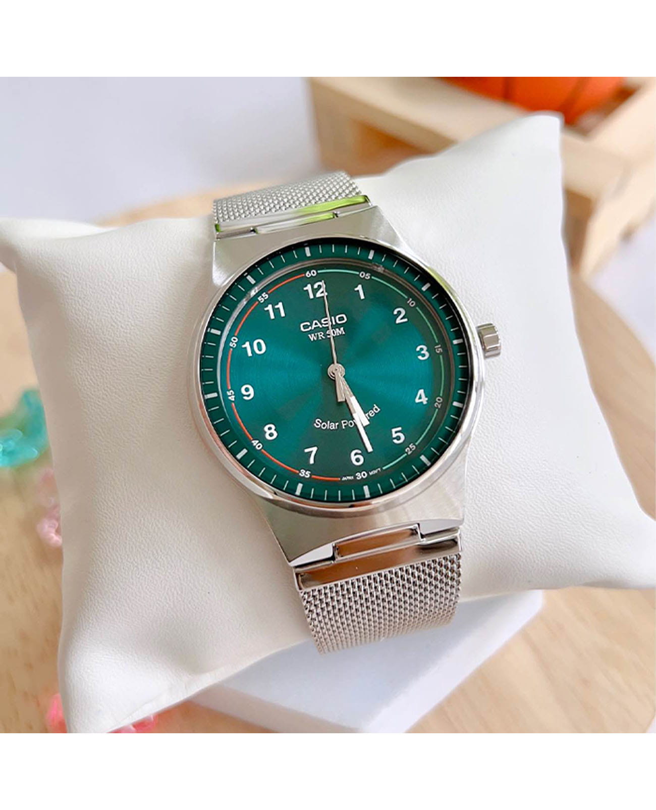 Японские мужские кварцевые часы с минеральным стекломМинеральное стеклоМинеральное стекло представляет собой искусственно выращенный минерал кварца. Такое стекло отличается особой устойчивостью к повреждениям и царапинам. Уступает по некоторым качествам сапфировому стеклу. Casio Collection MTP-RS105M-3B, кварцевый механизм с высокой точностью. Корпус часов изготовлен из нержавеющей стали. Питание от солнечной энергии. Время работы - 4 месяца. Циферблат с метками в виде штрихов выполнен по технологии Sunray (солнечные лучи). Циферблат с метками в виде штрихов. Класс водозащиты: 50 метров, позволит защитить корпус от случайных брызг или капель дождя. Стальной браслет миланского плетения на раскладном замкеРаскладной замокДанный вариант застежки используется только на часах с металлическим браслетом. Отличительная особенность такого крепления в том, что длина браслета становится универсальной и вы можете самостоятельно отрегулировать нужный вам размер – застежка просто двигается по браслету часов..