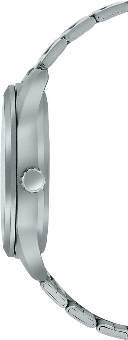 Аксессуар в классическом серебристом исполнении никогда не утратит актуальности, он будет прекрасным дополнением к классическому костюму, спортивной футболке, модных джинсах. Компактный циферблат выполнен в минималистичном стиле, с метками в виде штрихов. Кварцевый механизм с высокой точностью. Минеральное стеклоМинеральное стеклоМинеральное стекло представляет собой искусственно выращенный минерал кварца. Такое стекло отличается особой устойчивостью к повреждениям и царапинам. Уступает по некоторым качествам сапфировому стеклу. устойчивое к появлению царапин, обладающее высокой прозрачностью. Стрелки с люминесцентным покрытиемЛюминесцентное покрытиеПозволяет считывать показания времени в темноте. Производители наносят на стрелки, часовые индексы, безель или поверхность циферблата светонакопительный состав, дающий холодное свечение.. Класс водозащиты: 30 метров, позволит защитить корпус от случайных брызг или капель дождя. Корпус часов изготовлен из нержавеющей стали. Браслет с раскладной застёжкойРаскладная застёжкаТакой тип застёжки используется только на браслетах из металла. Она никогда не раскрывается полностью, происходит разделение на 2 и более частей. Раскладывающая застёжка снизит вероятность потери часов к минимуму..