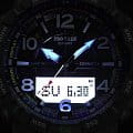 Аксессуар представлен в спортивном стиле, внимание привлекают угловатые детали и крупные габариты. Наручные часы в серебристо-чёрной расцветке оснащены множеством функций, необходимых для активного времяпрепровождения на природе, решения повседневных задач. Это термометр -10°C /+60°C, компас, барометр, график восхода и заката солнца, высотомер, мировое времяМировое время Полезное часовое усложнение, отображающее время в основных городах и известных областях по всему миру, оно связано с часовыми поясами, удобно для путешественников и бизнесменов. , шагомер, хронографХронографФункция позволяет измерять отрезки времени с особой точностью: часы, минуты, секунды. Верным признаком хронографа является наличие на циферблате 3 дополнительных окошек-счётчиков., будильник, календарь. Японский кварцевый механизм с точностью хода -/+15 секунд в месяц получает питание от батарейки, рассчитанной на 2-летний срок службы. Ударопрочный корпусУдаропрочный корпусМеханизм заключён в корпус, выполненный из современных материалов, устойчивых к ударам, механическим повреждениям и падению с высоты: инновационный пластик, карбон, нержавеющая сталь, титан. сделан из полимера, идеальным дополнением к нему стал титановый браслет с IP-покрытиемIP-покрытиеМетод ионного напыления. Демонстрирует повышенную устойчивость к истиранию, окислению и химическим веществам. Под воздействием высокого давления и температуры около 1500°C молекулы металла надёжно соединяются с частицами корпуса часов.. Электролюминесцентная подсветкаЭлектролюминесцентная подсветкаЭлектролюминесцентная панель устанавливается под ЖК-экраном часов, при нажатии кнопки электричество преобразуется в свет за счёт подачи напряжения на атомы фосфора, такой тип подсветки позволяет освещать весь циферблат. освещает дисплей, светодиодСветодиодная подсветкаСветодиодная или LED-подсветка обеспечивает появление яркого холодного свечения за счёт LED-элементов - маленьких лампочек. Они потребляют минимальное количество энергии, чаще всего можно встретить 1 светодиод, в нижней части циферблата. применяется для циферблата. Минеральное стекло защищает циферблат от повреждений, отличается устойчивостью к царапинам. Класс водостойкости – WR 100, часы подходят для плавания. Габариты: 57,5 x 50,8 x 15,8 мм.