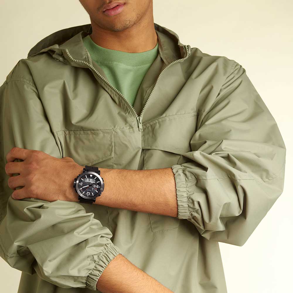 Мужские японские наручные часы на солнечной батарее Casio Pro Trek PRW-6611Y-1ER, кварцевый механизм с высокой точностью. Корпус выполнен из высококачественного пластика со вставками стали с IP-покрытиемIP-покрытиеМетод ионного напыления. Демонстрирует повышенную устойчивость к истиранию, окислению и химическим веществам. Под воздействием высокого давления и температуры около 1500°C молекулы металла надёжно соединяются с частицами корпуса часов.. Класс водозащиты: 100 метров, позволит плавать, нырять и заниматься другими водными видами спорта. Технология Tough SolarTough SolarТехнология основана на подзарядке аккумулятора от источника солнечного света, специальная панель улавливает солнечные лучи и преобразует их в энергию для работы часов. Достаточно пары минут нахождения на солнце для функционирования часов в течении суток.. Автоматическая подсветка при наклоне часов в сторону лица. СекундомерСекундомерСекундоме́р — прибор, способный измерять интервалы времени с точностью до долей секунды., сплит-хронографСплит-хронографИспользуется для измерения продолжительности нескольких временных отрезков, начинающихся одновременно, а заканчивающихся в разное время., таймерТаймерОтсчитывает секунды в обратном направлении в заданном интервале времени., мировое времяМировое время Полезное часовое усложнение, отображающее время в основных городах и известных областях по всему миру, оно связано с часовыми поясами, удобно для путешественников и бизнесменов. 29 часовых поясов, всемирное координированное время. Встроенный цифровой компас измеряет и отображает направление в виде одной из 16 точек. Диапазон измерения от 0° до 359° с разрешением 1°. Стрелочная индикация севера. Коррекция магнитного склонения. Высотомер - встроенный датчик барометрического давления с возможностью вывода результатов в единицах высоты над уровнем моря (от -700 до 10000 метров). Термометр от -10° до +60°С.