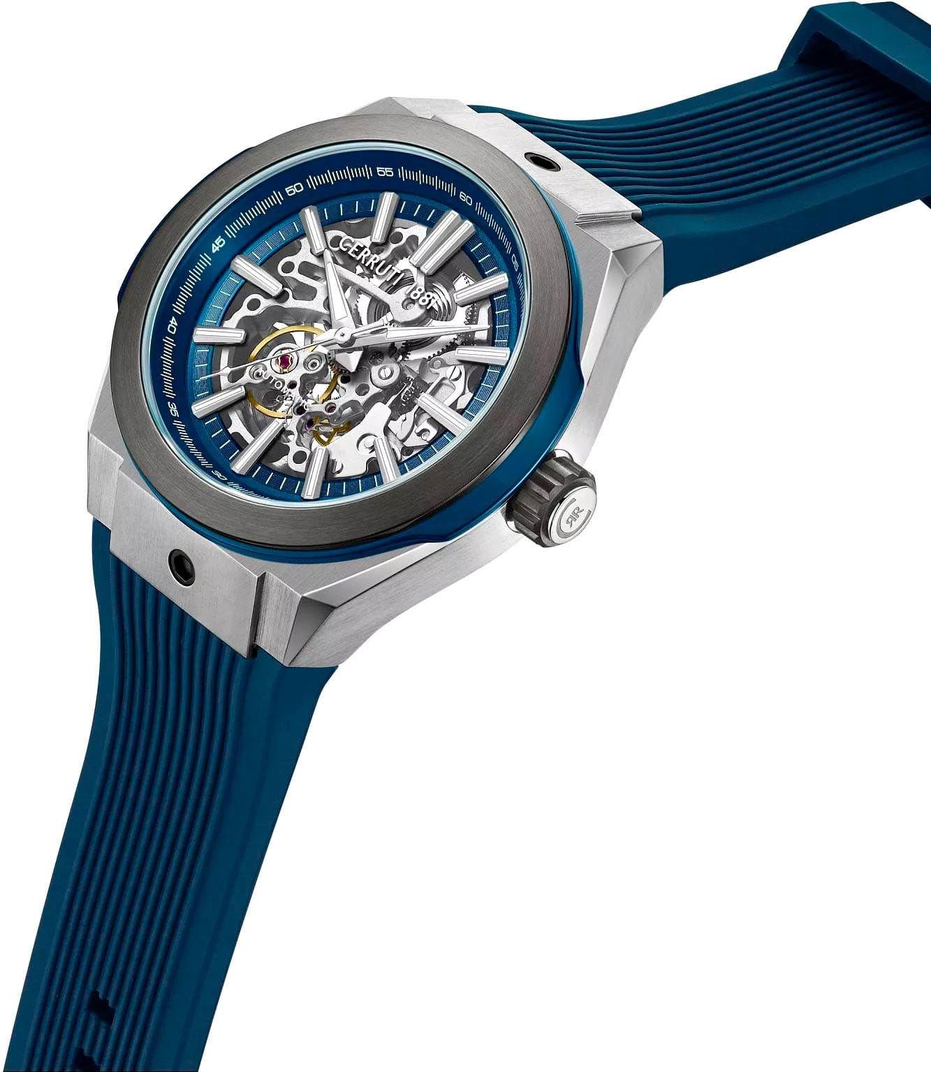 Cerruti 1881 CIWGR0073601 — эффектные механические мужские часы с открытой архитектурой, в которых эстетика инженерной точности соединяется с итальянской утончённостью. Корпус из нержавеющей стали с контрастным синим безелемБезельВнешний ободок, закрепляющий стекло. В спортивных часах так называется поворотное кольцо с делениями на циферблате, выполняет роль таймера – замеряет отрезки времени на шкале. Неподвижный безель – элемент декора. Однонаправленно вращающийся безель на дайверских часах позволяет фиксировать моменты погружения и выныривания на поверхность. с PVD-покрытиемPVDУльтратонкое покрытие наносится в технике вакуумного напыления, сочетает в себе нитрид титана особой прочности со слоем золота или оксида хрома. Несёт в себе декоративную или защитную функцию. подчёркивает современную форму и мощный характер модели. Скелетонизированный циферблат демонстрирует работу механизма, создавая ощущение глубины и движения. Металлизированные стрелки и метки с люминесцентным покрытиемЛюминесцентное покрытиеПозволяет считывать показания времени в темноте. Производители наносят на стрелки, часовые индексы, безель или поверхность циферблата светонакопительный состав, дающий холодное свечение. обеспечивают удобство считывания показаний, а надёжное минеральное стеклоМинеральное стеклоМинеральное стекло представляет собой искусственно выращенный минерал кварца. Такое стекло отличается особой устойчивостью к повреждениям и царапинам. Уступает по некоторым качествам сапфировому стеклу. защищает механизм от внешних воздействий. Эластичный силиконовый ремешок глубокого синего цвета гармонично дополняет стальной корпус и гарантирует комфорт при ношении. Cerruti 1881 — это слияние технологии, прозрачной механики и фирменной итальянской эстетики, созданное для тех, кто ценит движение в каждой детали.