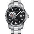 Чёрный циферблат оснащён дополнительным 24-часовым индикатором второго часового поясаВторой часовой поясФункция, позволяющая отображать время двух часовых поясов одновременно. в положении "9 часов", что особенно полезно для путешественников.