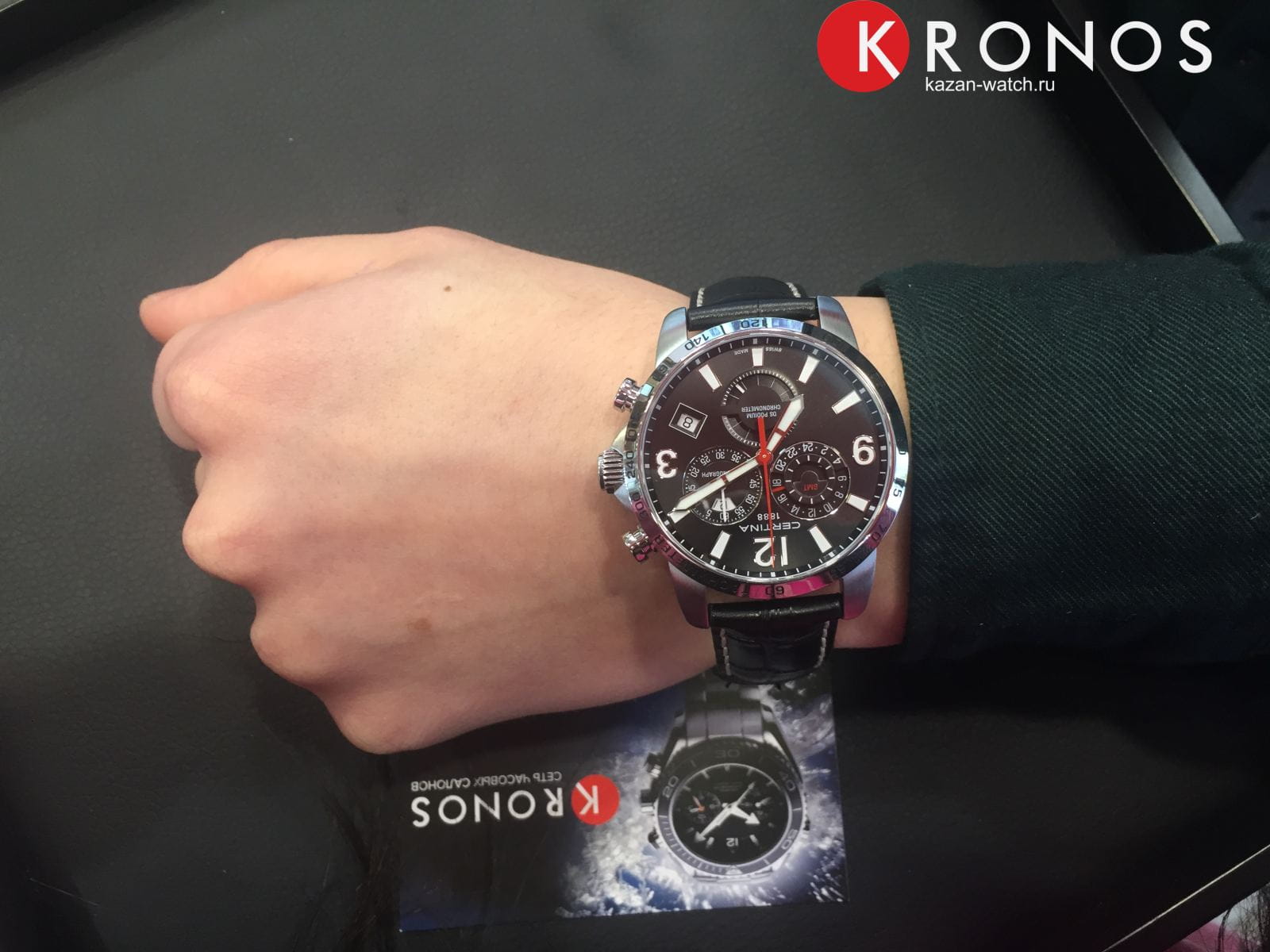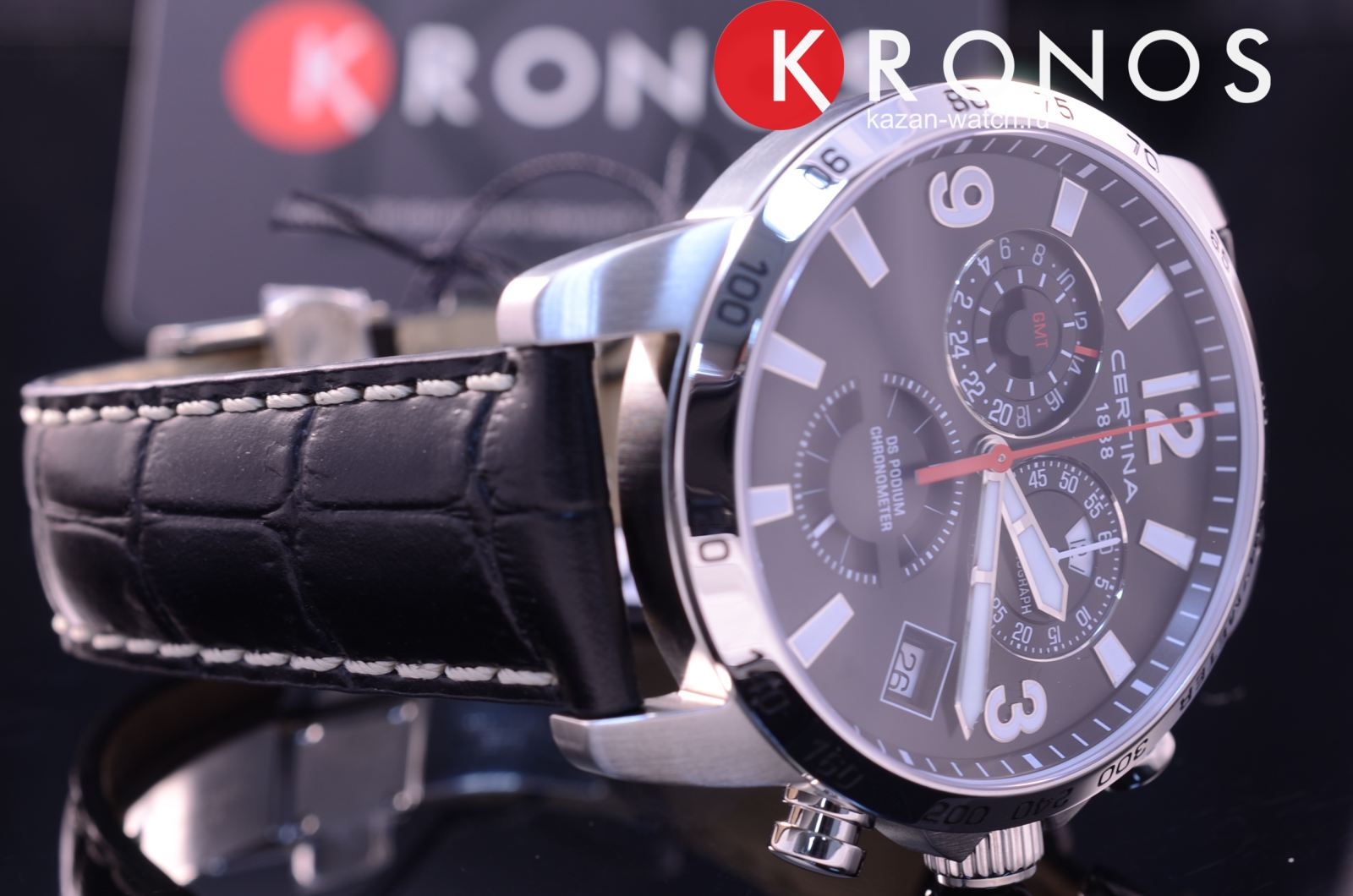 Наручные часы стали отображением спортивного стиля в классической элегантности, яркой деталью стали красные секундные стрелки. Брендовый хронографХронографФункция позволяет измерять отрезки времени с особой точностью: часы, минуты, секунды. Верным признаком хронографа является наличие на циферблате 3 дополнительных окошек-счётчиков. показывает время с абсолютной точностью благодаря швейцарскому кварцевому механизму ETA G10.962 Precidrive™Precidrive™Инновационный кварцевый механизм Certina. Часы, оснащённые этим швейцарским калибром, приравниваются к точности к сертифицированным хронометрам, точность хода составляет +/-10 секунд в год.. Такая особенность не осталась незамеченной, часы имеют сертификат хронометра COSCСертификат COSCОфициальный сертификат, подтверждающий то, что часы ходят с особо высокой точностью. Для получения документа часы подвергаются тестовым испытаниям, разработанным швейцарским институтом тестирования хронометров COSC. Допустимая норма для механических часов -4/+6 секунд в день, для кварцевых моделей +/- 0,07 секунд в день.. Чёрный ремешок из натуральной кожи. Система DS ConceptDS ConceptDouble Security Concept, обозначает двойную надёжность и безупречную точность часов Certina. Двойная система защиты подразумевает обеспечение максимальной устойчивости к ударам и высоких показателей водонепроницаемости.. Стрелки и метки с люминесцентным покрытиемЛюминесцентное покрытиеПозволяет считывать показания времени в темноте. Производители наносят на стрелки, часовые индексы, безель или поверхность циферблата светонакопительный состав, дающий холодное свечение.. Заводная головка с защитой. Сапфировое стекло. Степень водостойкости WR 100. Секундомер, GMTGMTОтображение времени второго часового пояса.Такая функция особенно актуальна для путешественников и бизнесменов,которые общаются с людьми из разных стран,теперь вы всегда будете знать,какой час у вашего партнёра или близкого человека., индикация числа, функция EOLEOLПредставляет собой систему, уведомляющую владельца часов о необходимости замены элемента питания. За 2 недели до полного разряда батарейки секундная стрелка перестаёт ходить чётко и начинает перепрыгивать на 3-4 деления.. Диаметр корпуса: 42 мм.