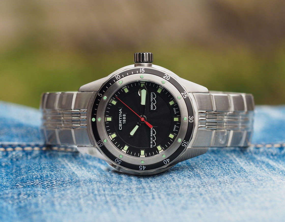 Мужские швейцарские часы с сапфировым стеклом Certina DS Blue Ribbon C007.410.11.051.01, кварцевый механизм с высокой точностью. Циферблат с люминесцентным покрытиемЛюминесцентное покрытиеПозволяет считывать показания времени в темноте. Производители наносят на стрелки, часовые индексы, безель или поверхность циферблата светонакопительный состав, дающий холодное свечение. стрелок и меток, дополнен сапфировым стекломСапфировое стеклоПрочный и надёжный материал из кристалла сапфира синтетического происхождения, характеризующийся особой твёрдостью и устойчивостью к царапинам и повреждениям., устойчивым к появлению царапин и обладающее высокой прозрачностью. Корпус часов изготовлен из стали.