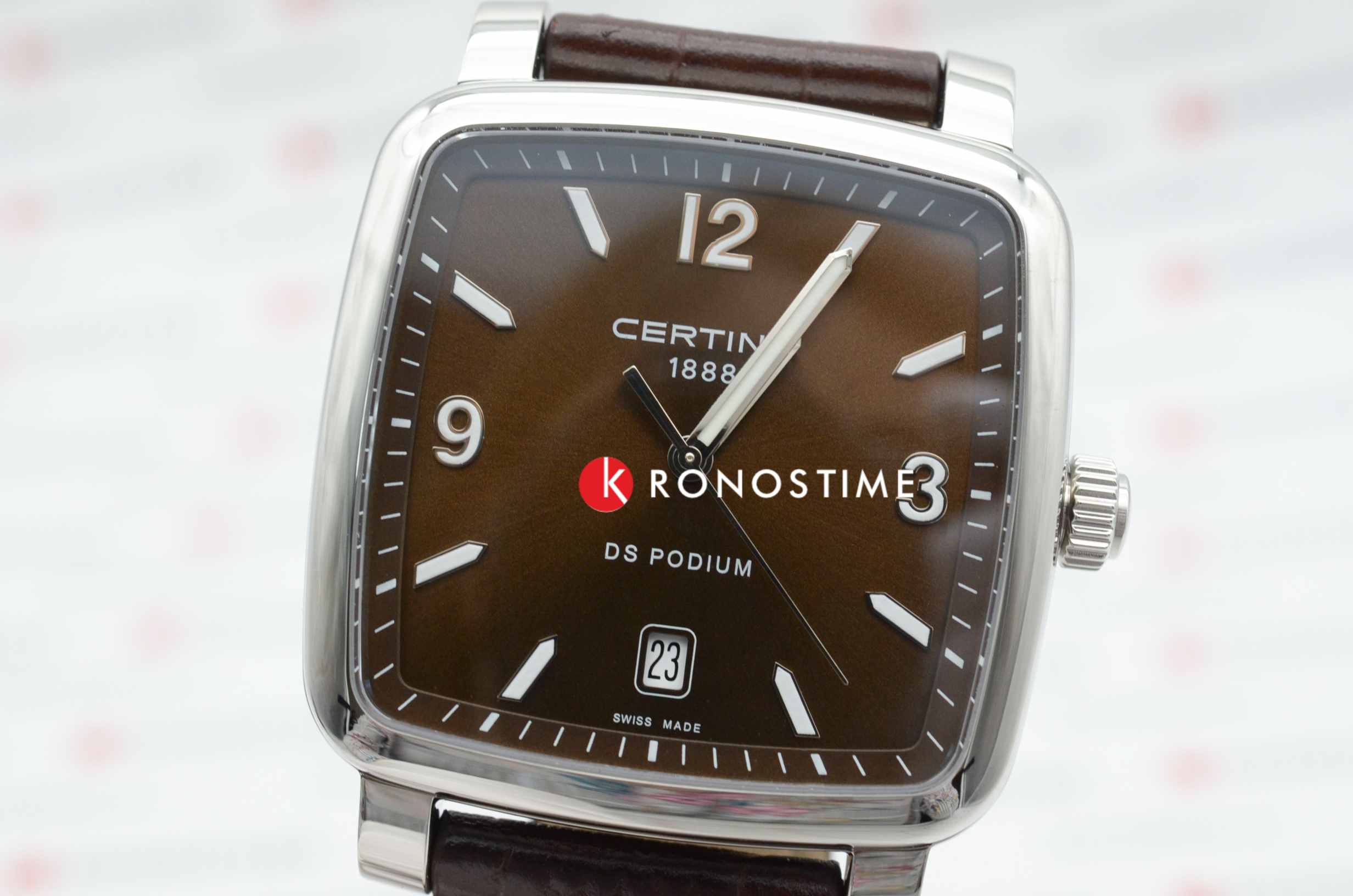 CERTINA C025.510.16.297.00 DS Podium Quartz - мужские кварцевые наручные часы. Корпус этих часов среднего размера (38.3 мм) и выполнен из нержавеющей стали L316 металлического цвета. Модель CERTINA C025.510.16.297.00 DS Podium Quartz имеет устойчивое к царапинам сапфировое стекло, ремешок из натуральной кожи коричневого цвета, коричневый циферблат. Калибр механизма: ETA F06.111. Класс водозащиты: 100 м / 10 АТМ (разрешается плавание и ныряние без акваланга). Дополнительные функции и особенности: отображение числа. Полная заводская комплектация CERTINA: оригинальные часы, фирменная коробка, инструкция, сервисная книжка, кассовый и товарный чеки. Международная гарантия 2 года. Производство и сборка: Швейцари