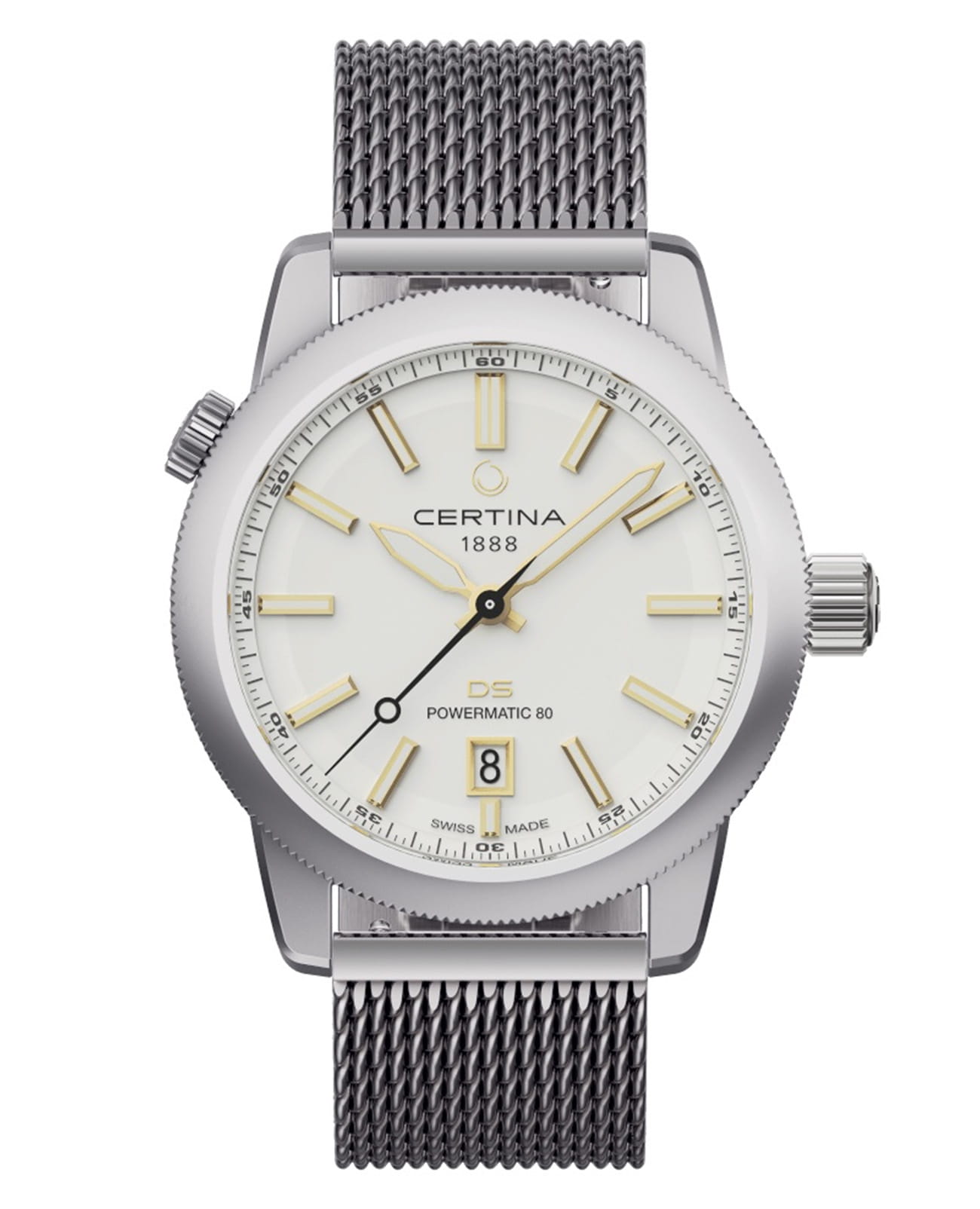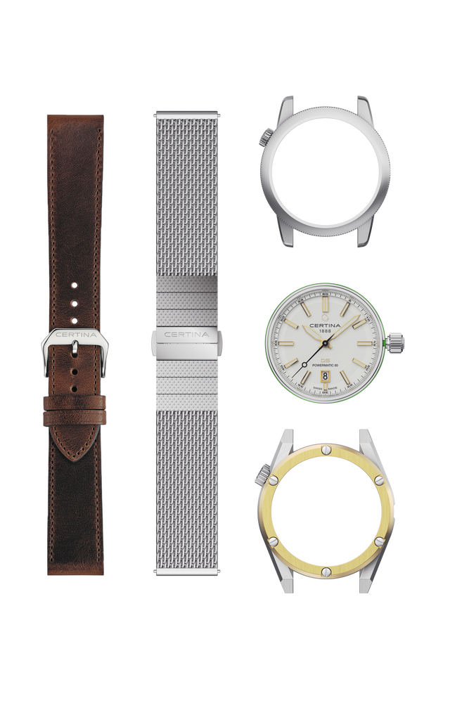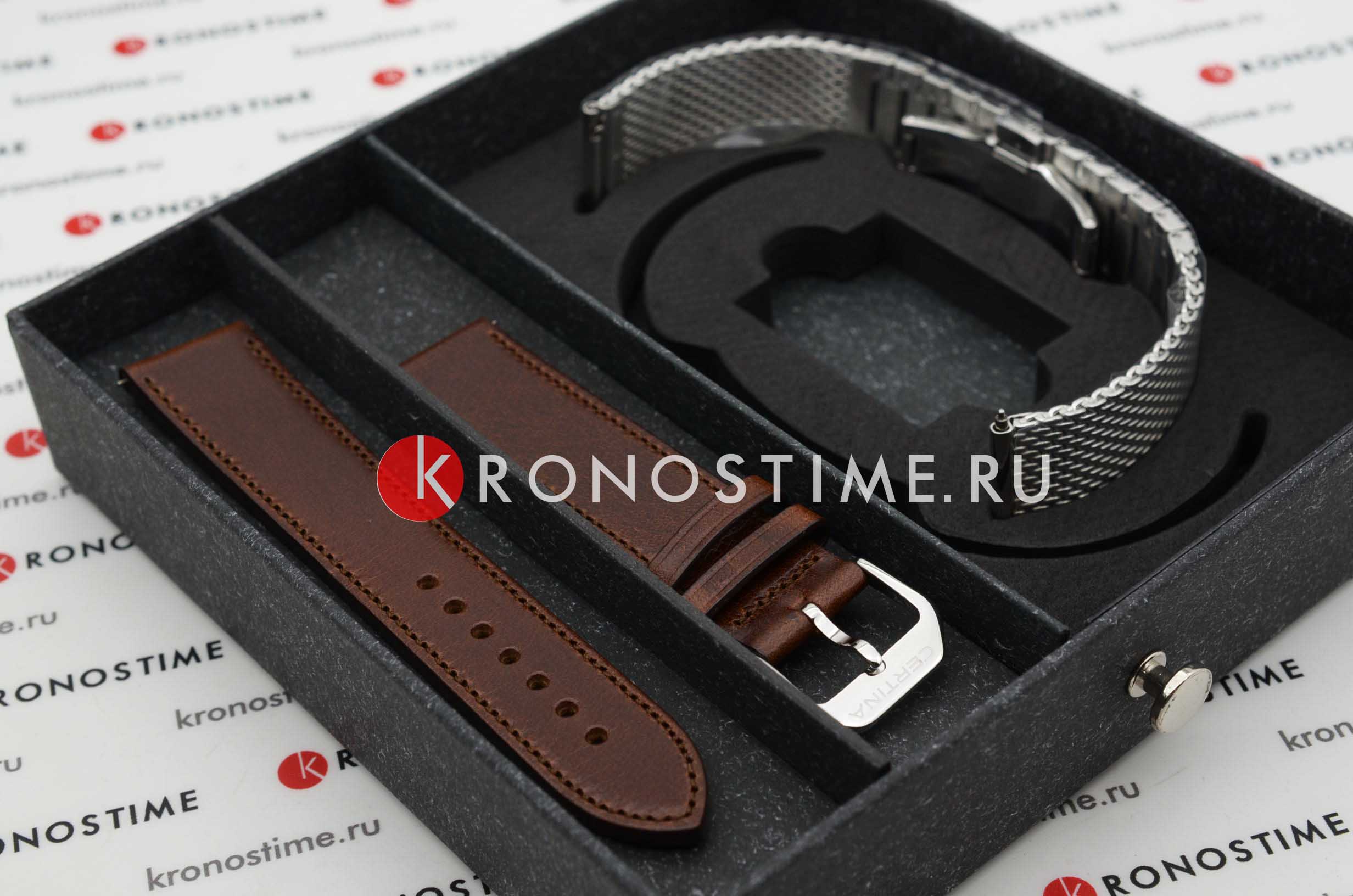 Мужские швейцарские модульные часы Certina DS+ C041.407.19.031.01. Модель DS+ представляет новую концепцию от Certina: часы с возможностью выбора не только ремешка, но и формы корпуса для создания кастомизированного аксессуара. Секрет DS+ заключается в конструкции, состоящей из трех частей: модуля механизма с циферблатом, корпуса и ремешка. Каждый из трех элементов представляет собой самостоятельную единицу. Модуль механизма круглой формы комбинируется с корпусами из нержавеющей стали и надежно закрепляется с помощью заводной головки на корпусе. Инновационная прокладка из биоматериала обеспечивает идеальное уплотнение. Ушки, расположенные на корпусе, позволяют использовать систему быстрой замены Certina для крепления выбранного ремешка. Современный механизм PowermaticPowermatic 80Эксклюзивный калибр от швейцарской компании ETA с увеличенным запасом хода до 80 часов за счёт удлинённой заводной пружины. Характеризуется улучшенной системой спуска со сниженным трением. с 80-часовым запасом хода и пружиной баланса NivachronTM. Наряду с часовой, минутной и секундной стрелками часы имеют окошко даты на отметке «6 часов». Благодаря сверхпрочной конструкции с завинчивающейся задней крышкой и завинчивающейся заводной головкой, часы обладают водонепроницаемостью до 20 бар (200 м). Сапфировое стекло устойчивое к появлению царапин, обладающее высокой прозрачностью. При изготовлении упаковки используются только перерабатываемые материалы – в полном соответствии с поставленными компанией целями устойчивого развития.