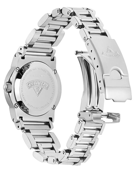 Женские швейцарские часы Certina DS Cascadeur C129.8100.42.59, кварцевый механизм с высокой точностью. Сапфировое стекло устойчивое к появлению царапин, обладающее высокой прозрачностью. Класс водозащиты: 100 метров, позволит плавать, нырять и заниматься другими водными видами спорта. Корпус часов изготовлен из стали, серебристого цвета.
