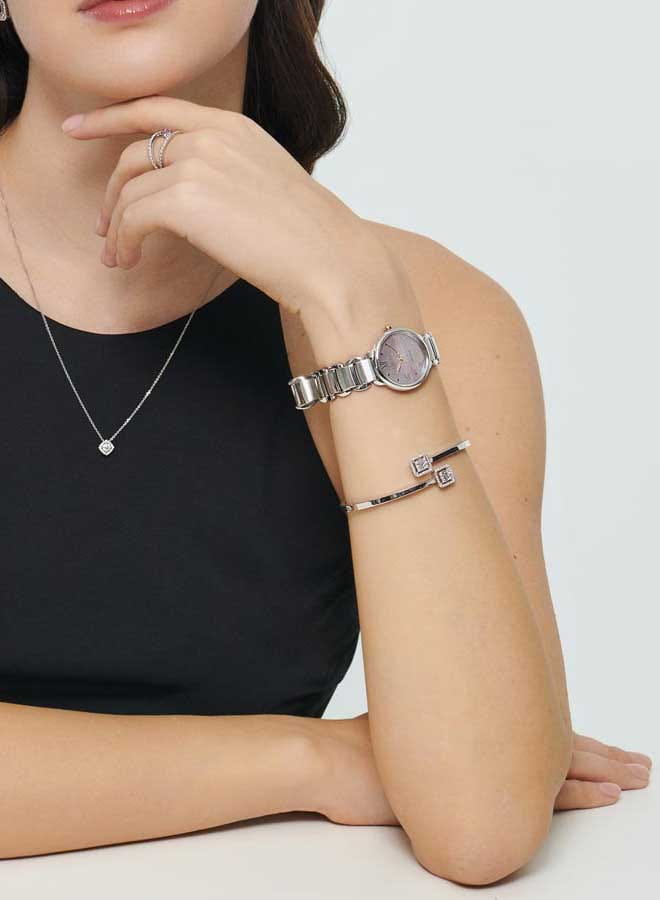 Часы Citizen EM0927-87Y произведены в Японии и оснащены точным кварцевым механизмом калибра Citizen E031 с инновационной системой Eco-Drive, работающей от солнечной энергии и обеспечивающей до 180 дней автономной работы без замены батареек. Корпус и браслет изготовлены из прочной нержавеющей стали, что придает изделию элегантный и современный вид, а браслет оснащен удобной застежкой «бабочка»Застёжка "бабочка"Такой вид застёжки дополняется предохранителями, помогающими избежать случайного раскрытия браслета. Обладают изящным исполнением. . Перламутровый циферблат украшен изящными метками в виде точек и римских цифр, защищён надежным сапфировым стекломСапфировое стеклоПрочный и надёжный материал из кристалла сапфира синтетического происхождения, характеризующийся особой твёрдостью и устойчивостью к царапинам и повреждениям., устойчивым к царапинам. Водозащита 50WR позволяет не беспокоиться о контакте с водой в повседневной жизни. Компактные размеры корпуса (диаметр 28 мм, толщина 8 мм) и легкий вес (68 г) обеспечивают комфортное ношение в течение всего дня. Эта модель станет не только точным инструментом для измерения времени, но и стильным завершением вашего образа.