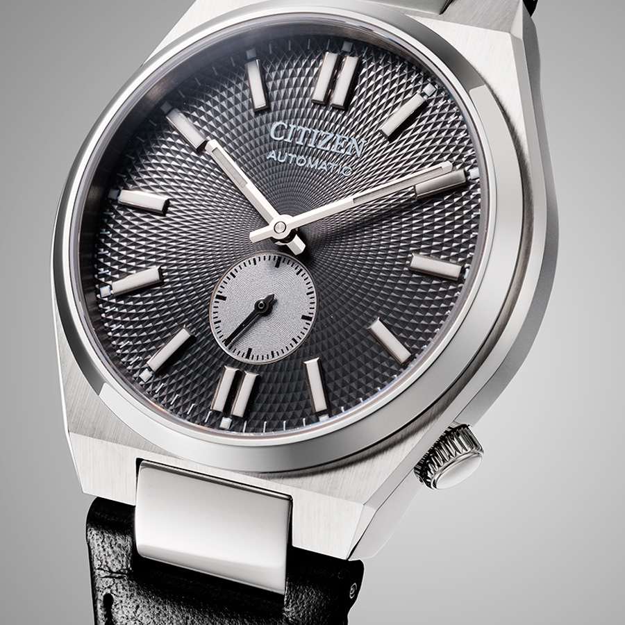 Мужские наручные часы Citizen Automatic NK5010-01H - идеальное сочетание классического и современного дизайна. Корпус из нержавеющей стали диаметром 41 мм идеально сбалансирован. Сапфировое стеклоСапфировое стеклоПрочный и надёжный материал из кристалла сапфира синтетического происхождения, характеризующийся особой твёрдостью и устойчивостью к царапинам и повреждениям. обеспечивает отличную защиту циферблата от царапин. Механические часы с автоподзаводом. Кожаный ремешок с застёжкой «бабочка» с кнопкамиЗастёжка "бабочка"Такой вид застёжки дополняется предохранителями, помогающими избежать случайного раскрытия браслета. Обладают изящным исполнением. идеально дополняют дизайн часов, обеспечивая комфортное ношение. В механизме 21 камень, частота 21600 полуколебаний в час. Стрелки и метки с люминесцентным покрытиемЛюминесцентное покрытиеПозволяет считывать показания времени в темноте. Производители наносят на стрелки, часовые индексы, безель или поверхность циферблата светонакопительный состав, дающий холодное свечение.. Секундная стрелка вынесена на отдельный циферблат. Текстурный циферблат выполнен по технологии Sunray (солнечные лучи). Метки в виде штрихов. Рифленая заводная головка. Циферблат выполнен по технологии Sunray (солнечные лучи). Часы обладают водонепроницаемостью до 50WR, что делает их идеальными для повседневной носки.