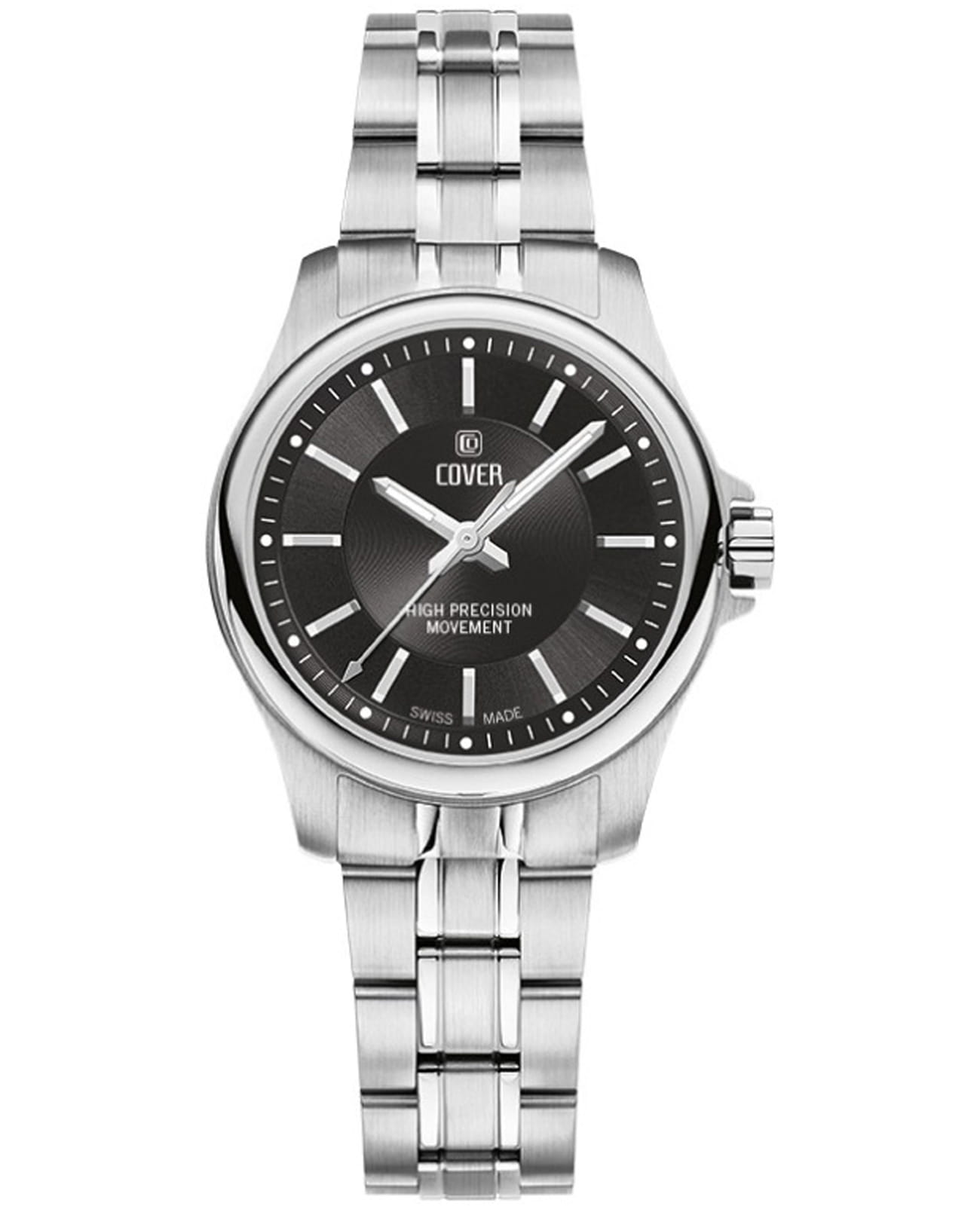 Женские наручные часы Cover CO201.01 из коллекции Marville сочетают в себе классический дизайн и высокую точность швейцарского производства. Модель обладает круглым корпусом диаметром 28 мм, изготовленным из нержавеющей стали, что придает изделию благородный внешний вид. Черный циферблат оснащен стрелками с люминесцентным покрытиемЛюминесцентное покрытиеПозволяет считывать показания времени в темноте. Производители наносят на стрелки, часовые индексы, безель или поверхность циферблата светонакопительный состав, дающий холодное свечение..  Для защиты используется сапфировое стеклоСапфировое стеклоПрочный и надёжный материал из кристалла сапфира синтетического происхождения, характеризующийся особой твёрдостью и устойчивостью к царапинам и повреждениям. с антибликовым покрытиемАнтибликовое покрытиеСлой оксида металла в 0,13-0,3 микрон, благодаря которому стекло часов не бликует и не отражает свет. Антибликовое покрытие уменьшает отражение света в 10 раз, обеспечивая отличную читаемость показателей циферблата., обеспечивающее прочную защиту от царапин и превосходную читаемость времени даже при ярком свете. Часы работают на высокоточном кварцевом механизме ETA, гарантирующем исключительную точность хода с погрешностью около 20 секунд в месяц. Браслет выполнен из нержавеющей стали и оснащен раскладной застежкойРаскладная застёжкаТакой тип застёжки используется только на браслетах из металла. Она никогда не раскрывается полностью, происходит разделение на 2 и более частей. Раскладывающая застёжка снизит вероятность потери часов к минимуму., обеспечивающей комфортное ношение и безопасность. Водонепроницаемость достигает 10 атмосфер (100 метров), что позволяет использовать их во время плавания и других водных видов спорта, однако не рекомендуется для глубоководного дайвинга. Эти швейцарские часы станут идеальным дополнением как классического, так и современного образа.