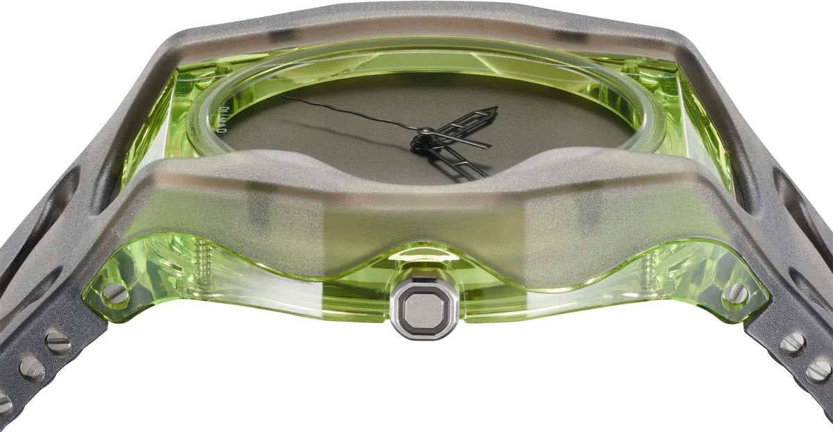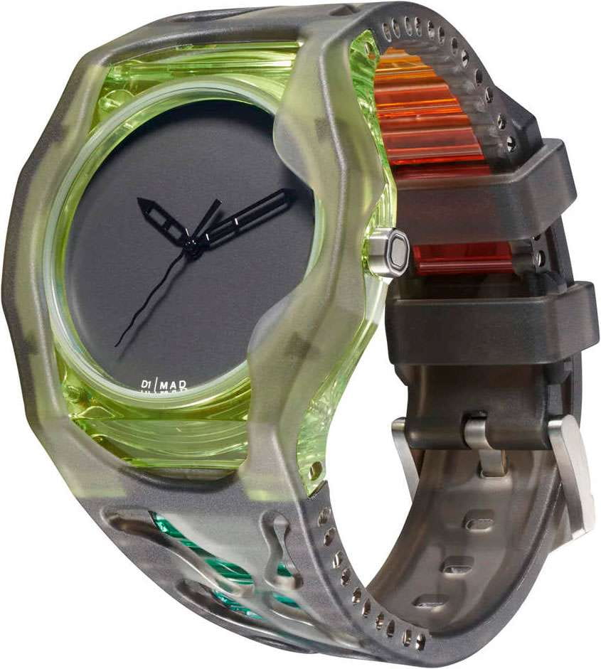Мужские часы D1 Milano MAD Paris x D1 MDRJ04 - уникальный аксессуар. Milano и MAD Paris представили ограниченную серию часов из шести необычных моделей, характеризующуюся яркой цветовой гаммой и монохромной эстетикой. Часы Spectrum имеют корпус из прозрачного нейлона, покрытого матовым полупрозрачным полиуретаном. Матовый циферблат без меток и стрелки в стиле Skeleton. Циферблат защищен минеральным стекломМинеральное стеклоМинеральное стекло представляет собой искусственно выращенный минерал кварца. Такое стекло отличается особой устойчивостью к повреждениям и царапинам. Уступает по некоторым качествам сапфировому стеклу., устойчивым к царапинам. Секундная стрелка имеет оригинальную волнообразную форму. Задняя крышка стальная, крепится на 4 винтах, каждый экземпляр имеет индивидуальный серийный номер. Ремешок оснащен классической застежкой.