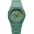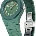 Часы D1 Milano Nanochrome Young Croco NCBJ02 – это стильные и молодежные наручные часы, идеально подходящие для подростков. Модель имеет компактный корпус диаметром 32 мм и толщиной 8,8 мм, изготовленный из поликарбоната с мягким на ощупь покрытием. Часы оснащены матовым зеленым циферблатом с белыми и оранжевыми деталями, что придает им яркий и современный вид. Минеральное стекло с антибликовым покрытием защищает циферблат от царапин. Часы работают от кварцевого механизма Seiko VJ20, обеспечивающего точный ход. Зеленый поликарбонатный ремешок с потайной раскладной застёжкойРаскладная застёжкаТакой тип застёжки используется только на браслетах из металла. Она никогда не раскрывается полностью, происходит разделение на 2 и более частей. Раскладывающая застёжка снизит вероятность потери часов к минимуму. удобно облегает запястье. Водонепроницаемость 5 ATM позволяет носить часы при плавании. Легкий вес всего 34 грамма делает их комфортными для повседневного использования. Часы D1 Milano Nanochrome NCBJ01 сочетают в себе итальянский дизайн, качество и доступность, что делает их отличным выбором для молодых людей, желающих выразить свой стиль.