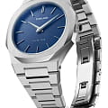 Наручные часы D1 Milano UTBU01 из коллекции Ultra Thin сочетают в себе элегантный дизайн и современные технологии. Модель обладает круглым корпусом диаметром 38 мм, изготовленным из нержавеющей стали, что обеспечивает высокую устойчивость к внешним воздействиям. Для защиты циферблата используется сапфировое стеклоСапфировое стеклоПрочный и надёжный материал из кристалла сапфира синтетического происхождения, характеризующийся особой твёрдостью и устойчивостью к царапинам и повреждениям., которое эффективно противостоит царапинам и механическим повреждениям. Часы оснащены автоматическим механизмом Miyota 1L22. Водонепроницаемость модели достигает 5 атмосфер (50 метров), что позволяет использовать их при контакте с водой, например, во время мытья рук или дождя. Браслет выполнен из нержавеющей стали с раскладной застежкойРаскладной замокДанный вариант застежки используется только на часах с металлическим браслетом. Отличительная особенность такого крепления в том, что длина браслета становится универсальной и вы можете самостоятельно отрегулировать нужный вам размер – застежка просто двигается по браслету часов., обеспечивающей комфортное ношение и безопасность. Циферблат с метками в виде штрихов делает их идеальным выбором для повседневного использования или особых случаев.