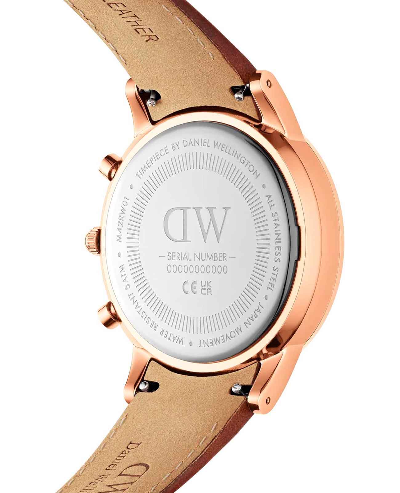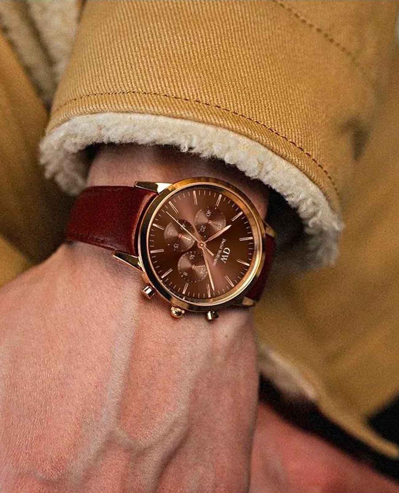 Мужские наручные часы-хронографХронографФункция позволяет измерять отрезки времени с особой точностью: часы, минуты, секунды. Верным признаком хронографа является наличие на циферблате 3 дополнительных окошек-счётчиков. с минеральным стеклом Минеральное стеклоМинеральное стекло представляет собой искусственно выращенный минерал кварца. Такое стекло отличается особой устойчивостью к повреждениям и царапинам. Уступает по некоторым качествам сапфировому стеклу. Daniel Wellington Daniel Wellington Iconic Link Arctic DW00100640, кварцевый механизм с высокой точностью. Корпус часов изготовлен из стали с PVD-покрытиемPVDУльтратонкое покрытие наносится в технике вакуумного напыления, сочетает в себе нитрид титана особой прочности со слоем золота или оксида хрома. Несёт в себе декоративную или защитную функцию.. Циферблат украшен фирменным логотипом Daniel Wellington. Накладные метки в виде штрихов. Рифленая заводная головка. Класс водозащиты: 50 метров, позволит защитить корпус от случайных брызг или капель дождя. Кожаный ремешок на стандартной застежке.