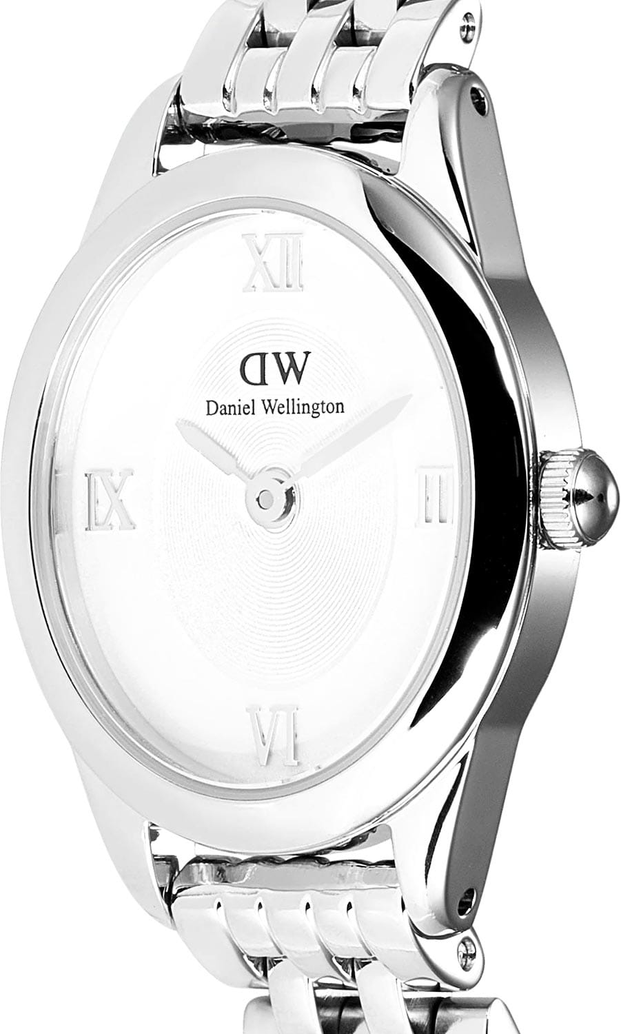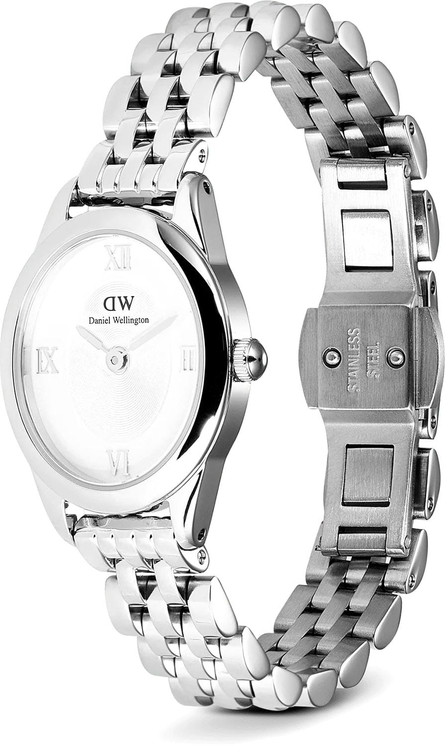 Daniel Wellington Ophelia — женственные часы с овальным корпусом 22 мм из нержавеющей стали с изящным. Глубокий циферблат с радиальным переливом украшен римскими индексами, что придаёт образу классическую элегантность.