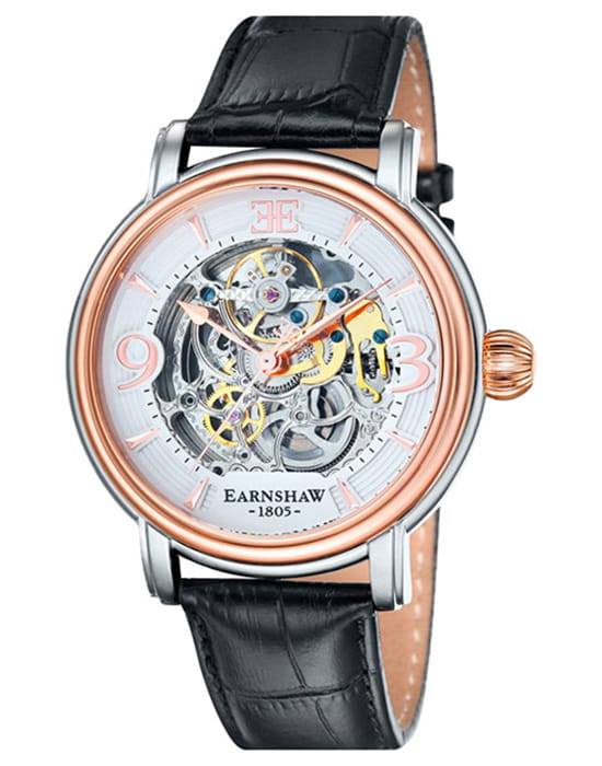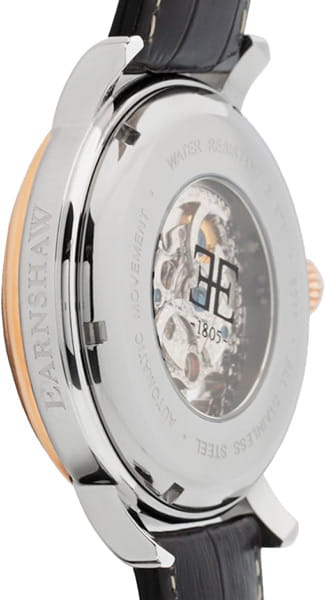 Мужские английские механические часы-скелетоны Earnshaw ES-8011-06, механический механизм (автоматический калибр) с высокой точностью. Класс водозащиты: 50 метров, позволит защитить корпус от случайных брызг или капель дождя. Корпус часов изготовлен из стали, цвета.
