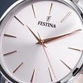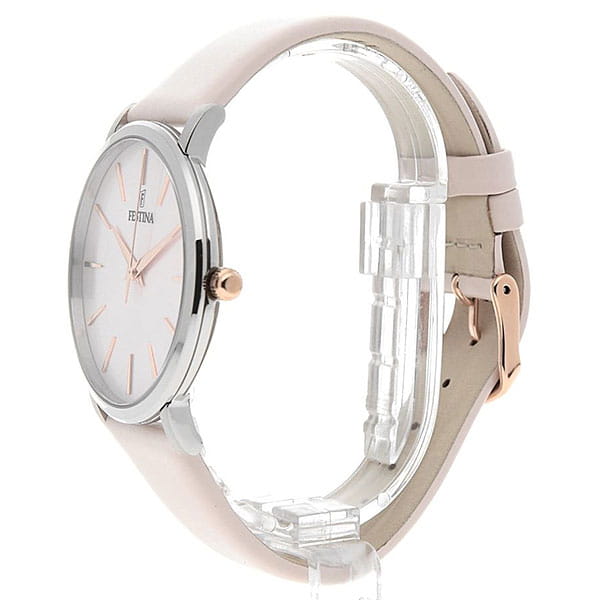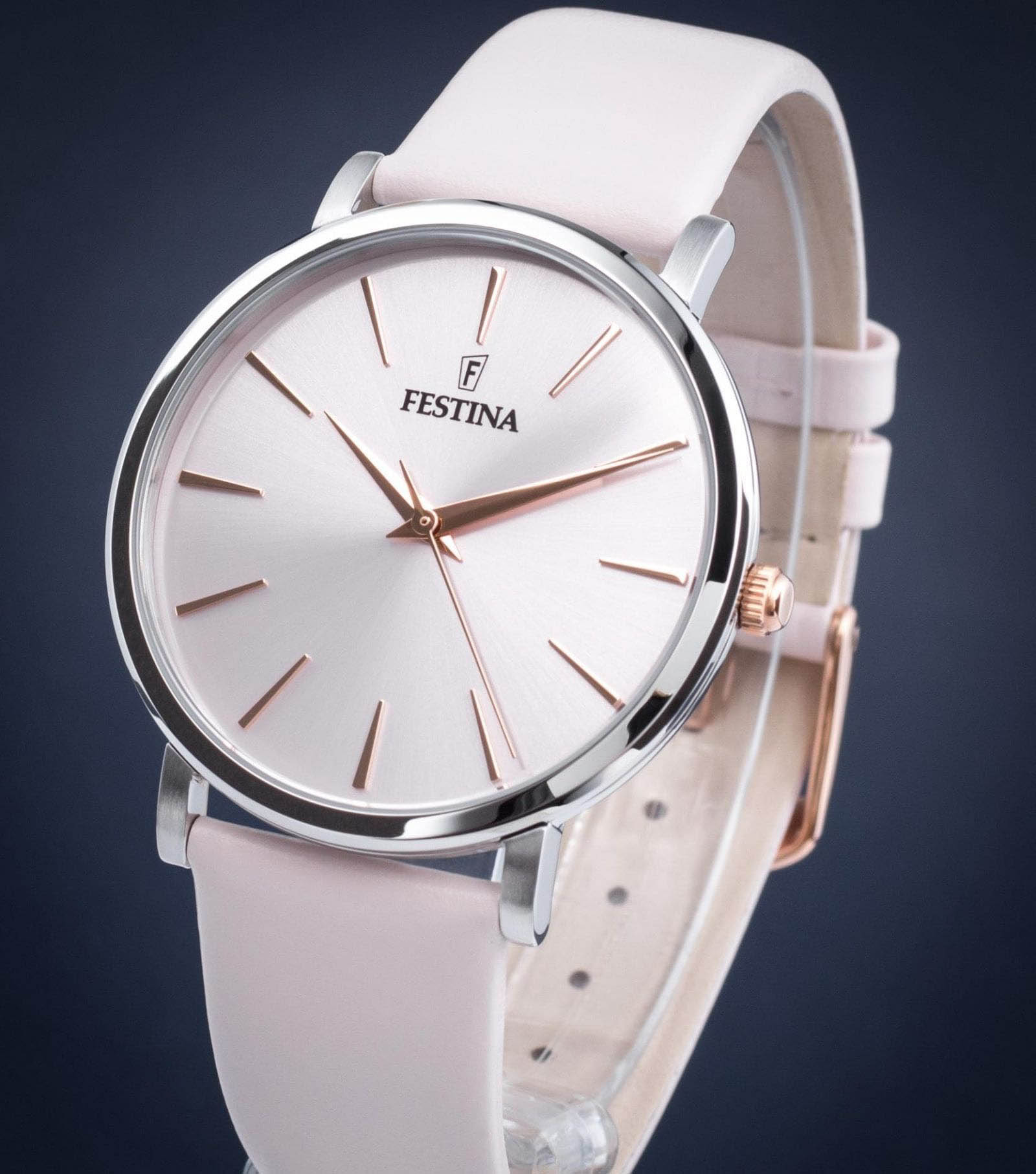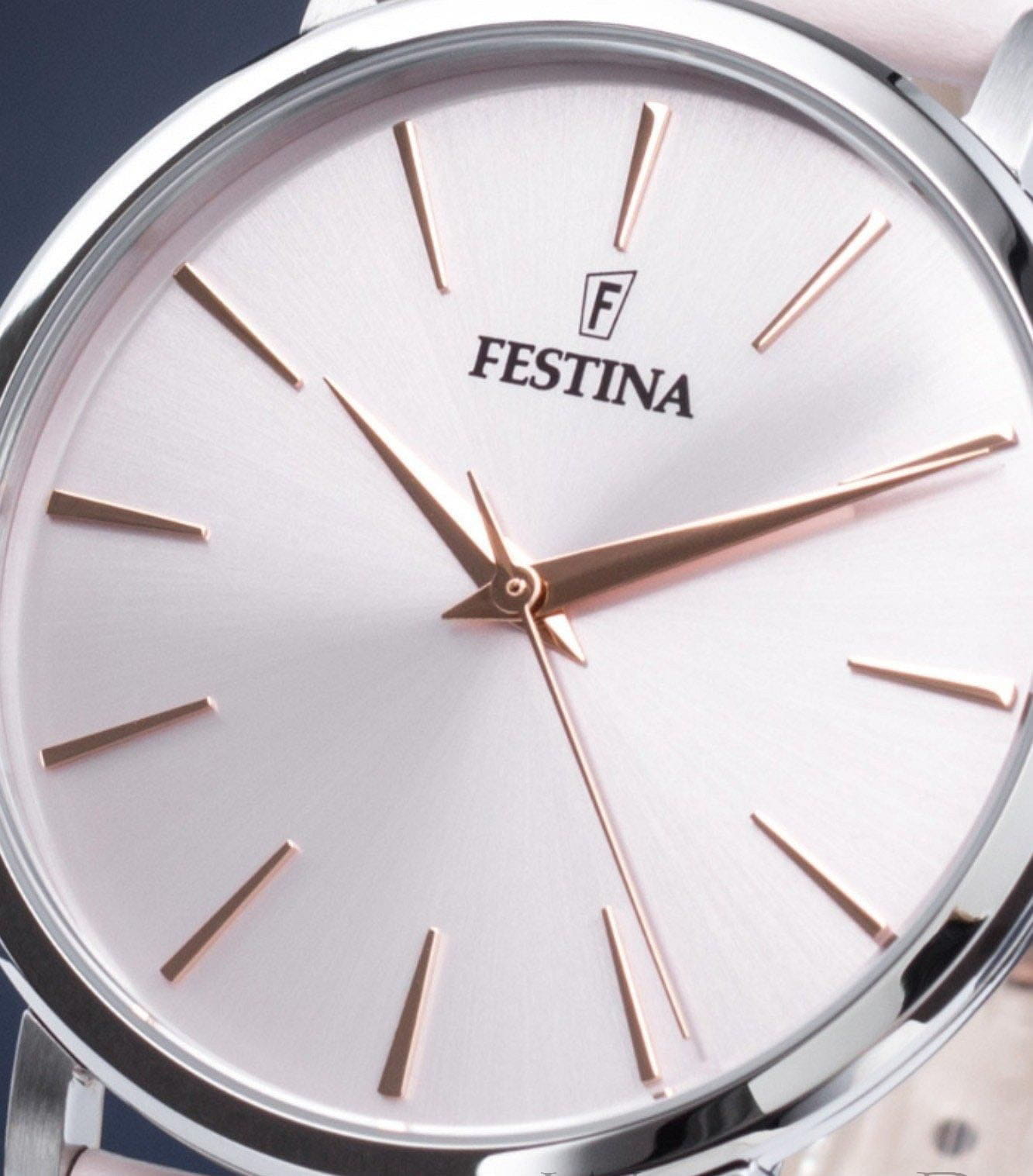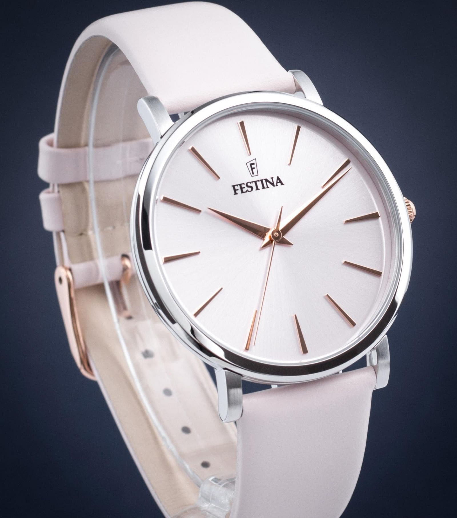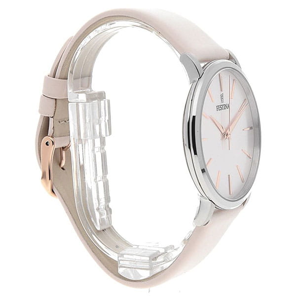 Женские кварцевые часы с минеральным стекломМинеральное стеклоМинеральное стекло представляет собой искусственно выращенный минерал кварца. Такое стекло отличается особой устойчивостью к повреждениям и царапинам. Уступает по некоторым качествам сапфировому стеклу. Festina Boyfriend F20371/2, кварцевый механизм с высокой точностью. Класс водозащиты: 30 метров, позволит защитить корпус от случайных брызг или капель дождя. Корпус часов изготовлен из стали. Кожаный ремешок на стандартной застёжке. Эффектные женские часы в лаконичном дизайне - отличное дополнение вашего образа.