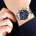 Эксклюзивный хронографХронографФункция позволяет измерять отрезки времени с особой точностью: часы, минуты, секунды. Верным признаком хронографа является наличие на циферблате 3 дополнительных окошек-счётчиков. с секундомеромСекундомерСекундоме́р — прибор, способный измерять интервалы времени с точностью до долей секунды., отличающийся продуманным дизайном и отделкой, придется по вкусу мужчинам, ценящим идеальное соотношение цены и качества.. Минеральное стеклоМинеральное стеклоМинеральное стекло представляет собой искусственно выращенный минерал кварца. Такое стекло отличается особой устойчивостью к повреждениям и царапинам. Уступает по некоторым качествам сапфировому стеклу. устойчивое к появлению царапин, обладающее высокой прозрачностью. Циферблат с люминесцентным покрытиемЛюминесцентное покрытиеПозволяет считывать показания времени в темноте. Производители наносят на стрелки, часовые индексы, безель или поверхность циферблата светонакопительный состав, дающий холодное свечение. стрелок и меток. Класс водозащиты: 100 метров, позволит защитить корпус от случайных брызг или капель дождя. Браслет с раскладной застёжкойРаскладная застёжкаТакой тип застёжки используется только на браслетах из металла. Она никогда не раскрывается полностью, происходит разделение на 2 и более частей. Раскладывающая застёжка снизит вероятность потери часов к минимуму..