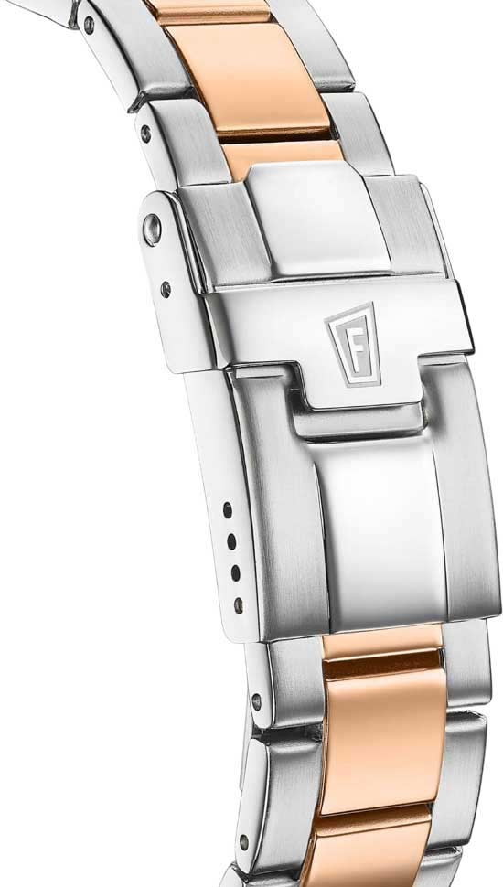 Часы Festina Boyfriend F20605/3 — элегантная модель хронографаХронографФункция позволяет измерять отрезки времени с особой точностью: часы, минуты, секунды. Верным признаком хронографа является наличие на циферблате 3 дополнительных окошек-счётчиков. с секундомеромСекундомерСекундоме́р — прибор, способный измерять интервалы времени с точностью до долей секунды., сочетающая стиль и функциональность. Минеральное стеклоМинеральное стеклоМинеральное стекло представляет собой искусственно выращенный минерал кварца. Такое стекло отличается особой устойчивостью к повреждениям и царапинам. Уступает по некоторым качествам сапфировому стеклу. устойчивое к появлению царапин, обладающее высокой прозрачностью. Корпус диаметром 39 мм выполнен из нержавеющей стали. Циферблат выполнен по технологии Sunray (солнечные лучи). Метки в виде точек, инкрустированных фианитами, и арабской цифры 12. Вращающийся безельБезельВнешний ободок, закрепляющий стекло. В спортивных часах так называется поворотное кольцо с делениями на циферблате, выполняет роль таймера – замеряет отрезки времени на шкале. Неподвижный безель – элемент декора. Однонаправленно вращающийся безель на дайверских часах позволяет фиксировать моменты погружения и выныривания на поверхность. с PVD-покрытиемPVDУльтратонкое покрытие наносится в технике вакуумного напыления, сочетает в себе нитрид титана особой прочности со слоем золота или оксида хрома. Несёт в себе декоративную или защитную функцию.. Браслет с частичным PVDPVDУльтратонкое покрытие наносится в технике вакуумного напыления, сочетает в себе нитрид титана особой прочности со слоем золота или оксида хрома. Несёт в себе декоративную или защитную функцию. покрытием и с раскладной застёжкойРаскладная застёжкаТакой тип застёжки используется только на браслетах из металла. Она никогда не раскрывается полностью, происходит разделение на 2 и более частей. Раскладывающая застёжка снизит вероятность потери часов к минимуму. обеспечивает комфортное ношение. Класс водозащиты: 100 метров, позволит плавать, нырять и заниматься другими водными видами спорта. Эти часы подчёркивают изысканный вкус своей обладательницы, идеально подходя для повседневного ношения и особых случаев.