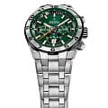 Часы-хронографХронографФункция позволяет измерять отрезки времени с особой точностью: часы, минуты, секунды. Верным признаком хронографа является наличие на циферблате 3 дополнительных окошек-счётчиков.. Кварцевый механизм с высокой точностью. Минеральное стеклоМинеральное стеклоМинеральное стекло представляет собой искусственно выращенный минерал кварца. Такое стекло отличается особой устойчивостью к повреждениям и царапинам. Уступает по некоторым качествам сапфировому стеклу. устойчивое к появлению царапин, обладающее высокой прозрачностью. Класс водозащиты: 100 метров, позволит плавать, нырять и заниматься другими водными видами спорта. Безель c PVD-покрытиемPVDУльтратонкое покрытие наносится в технике вакуумного напыления, сочетает в себе нитрид титана особой прочности со слоем золота или оксида хрома. Несёт в себе декоративную или защитную функцию.. Стрелки и метки с люминесцентным покрытиемЛюминесцентное покрытиеПозволяет считывать показания времени в темноте. Производители наносят на стрелки, часовые индексы, безель или поверхность циферблата светонакопительный состав, дающий холодное свечение.. Корпус часов изготовлен из нержавеющей стали. Браслет с раскладной застёжкойРаскладная застёжкаТакой тип застёжки используется только на браслетах из металла. Она никогда не раскрывается полностью, происходит разделение на 2 и более частей. Раскладывающая застёжка снизит вероятность потери часов к минимуму..